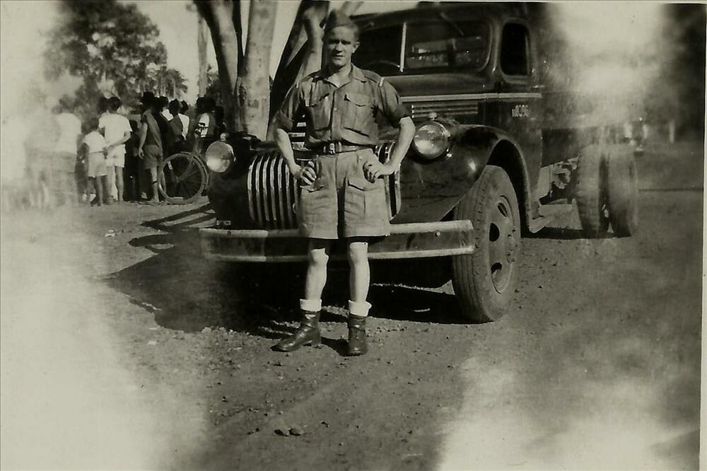 Nederlands Indië; militair, korte broek, pick-up tru...