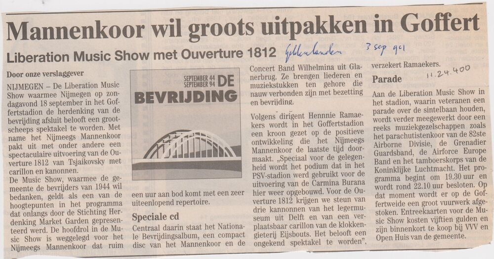 Mannenkoor wil groots uitpakken in Goffert, 3 septem...