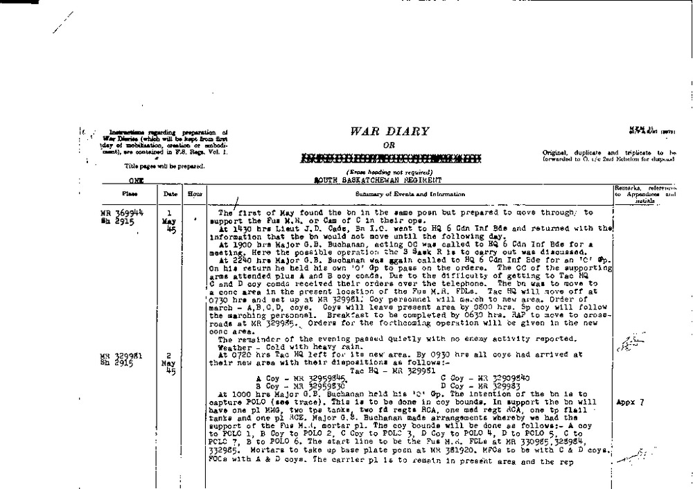 War Diary South Saskatchewan Regiment, 2nd Canadian ...