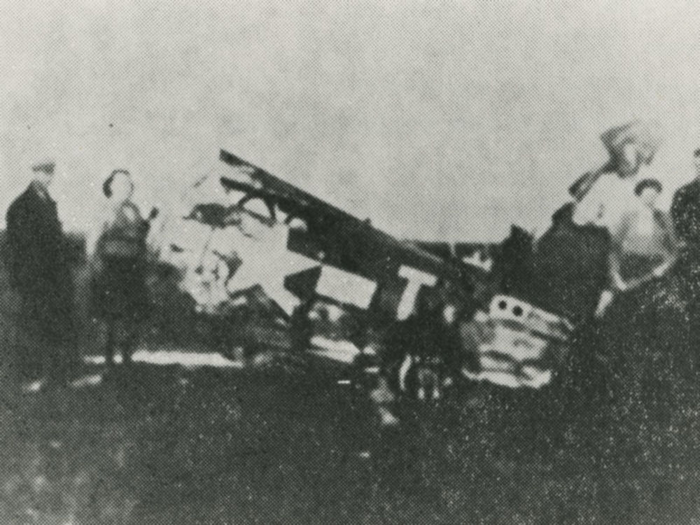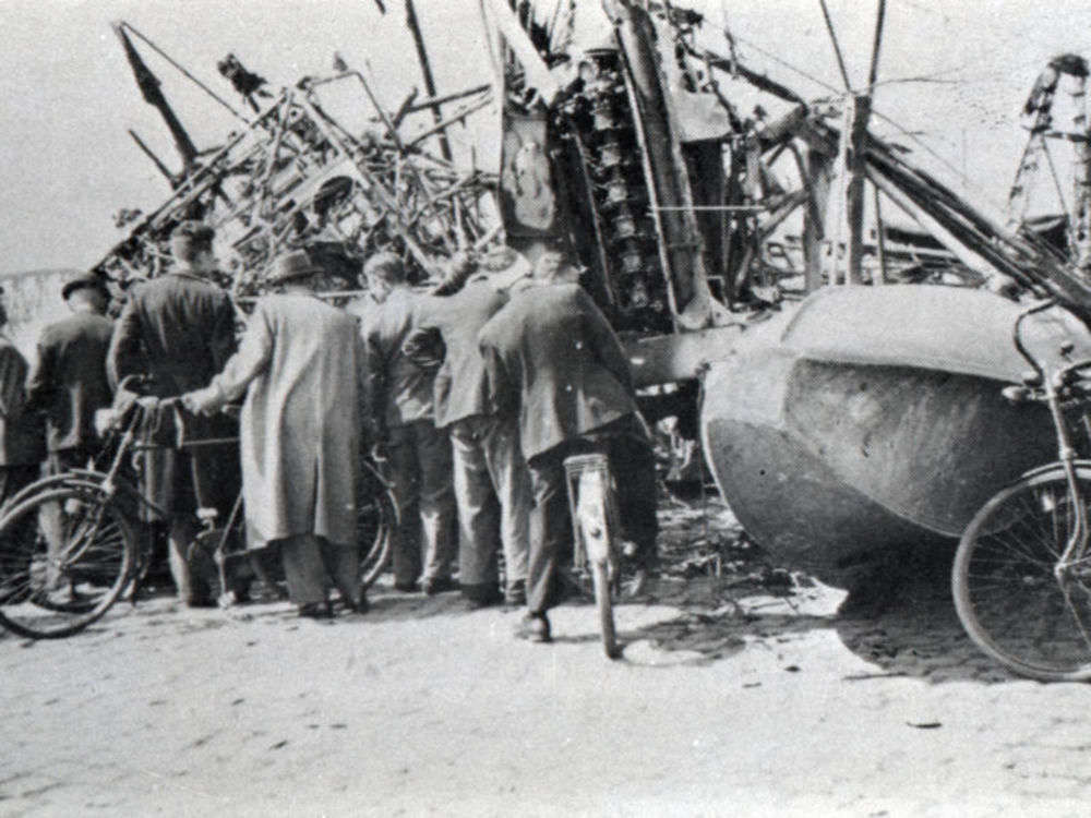 Foto van burgers bij wrakstukken P-47 Thunderbolt. T...