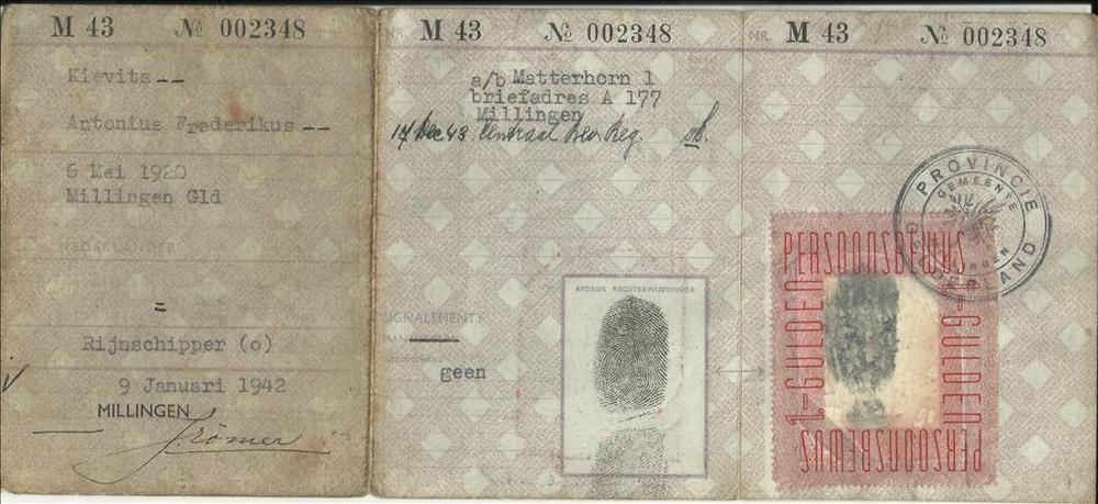 persoonsbewijs op naam van Kievits, Antonius Frederikus