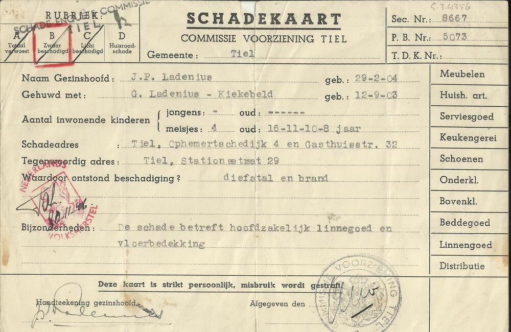 Schadekaart Commissie Voorziening Tiel van Fam.L.A. ...