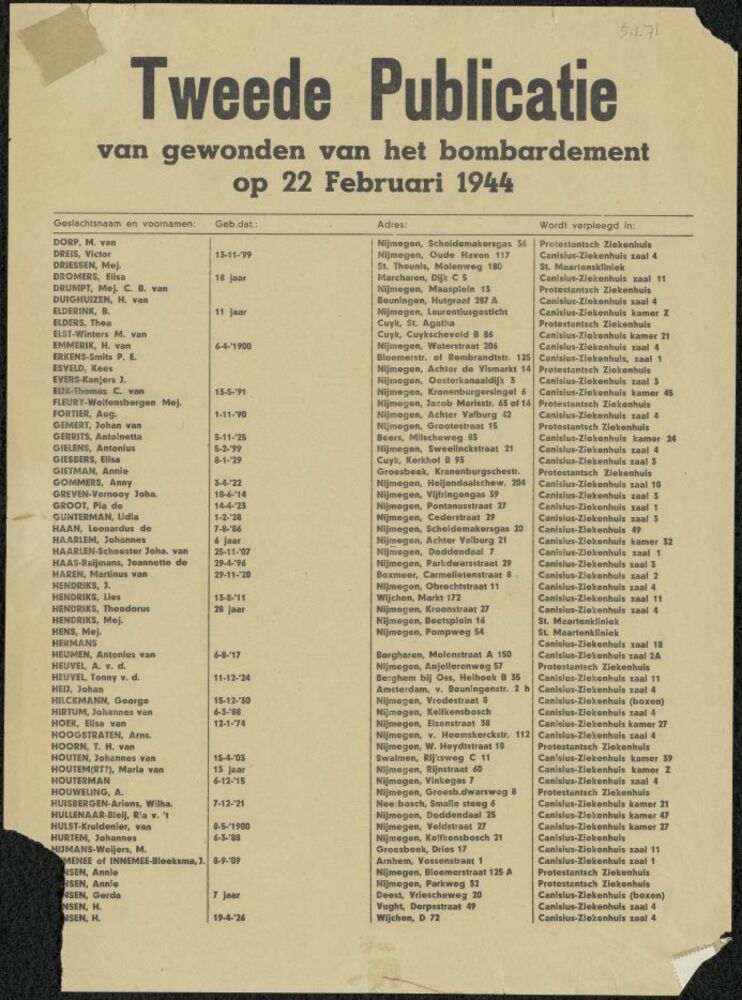 Publicatielijst met namen slachtoffers bombardement ...