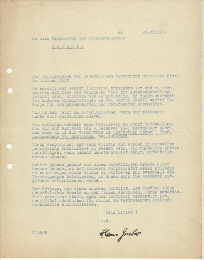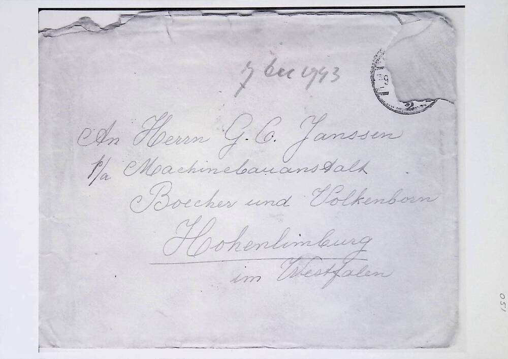 Brief in enveloppe. 7 december 1943. Aan den heer G....