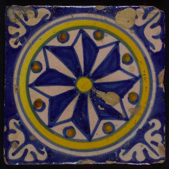 Ornamenttegel, grote achtpuntige ster, hoekmotief ui...