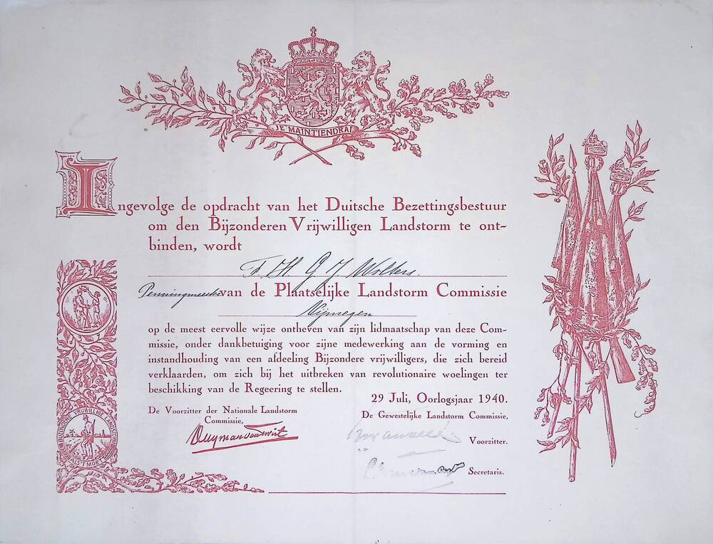 Ontbinding van dhr Wolters van de plaatselijke Lands...