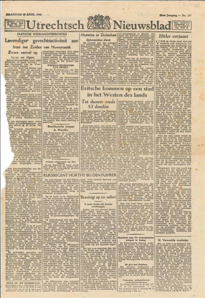Utrechtsch Nieuwsblad, Maandag 19 april 1943