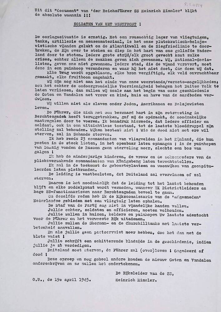 "Proclamatie Heinrich Himmler 19-4-1945" ( Vervalsin...