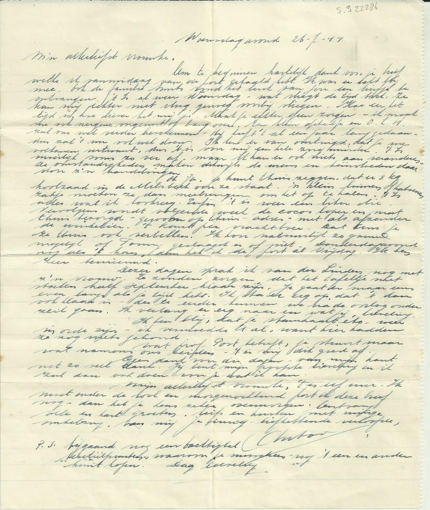 Brief van Antoon Jeuken aan verloofde, 26 juli 1944