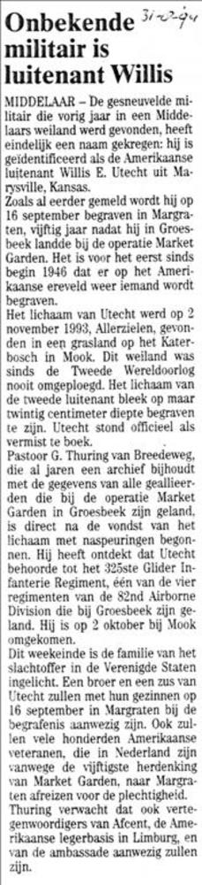 kopie krantartikel Lt Willis A. UTECHT, identificatie