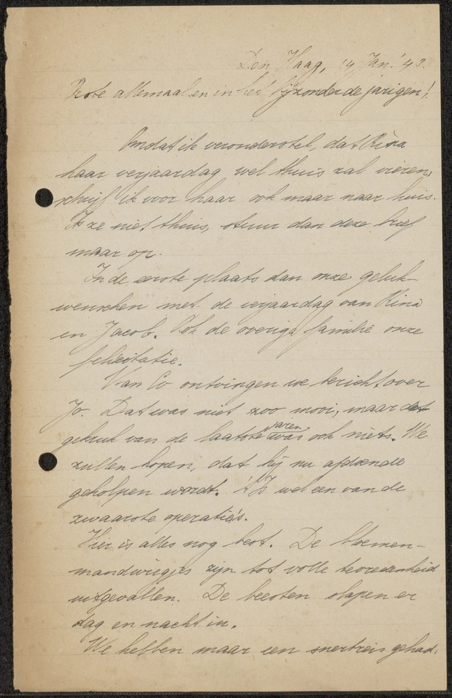Brief, De Haag 14 jan.1943, Beste Allemaal