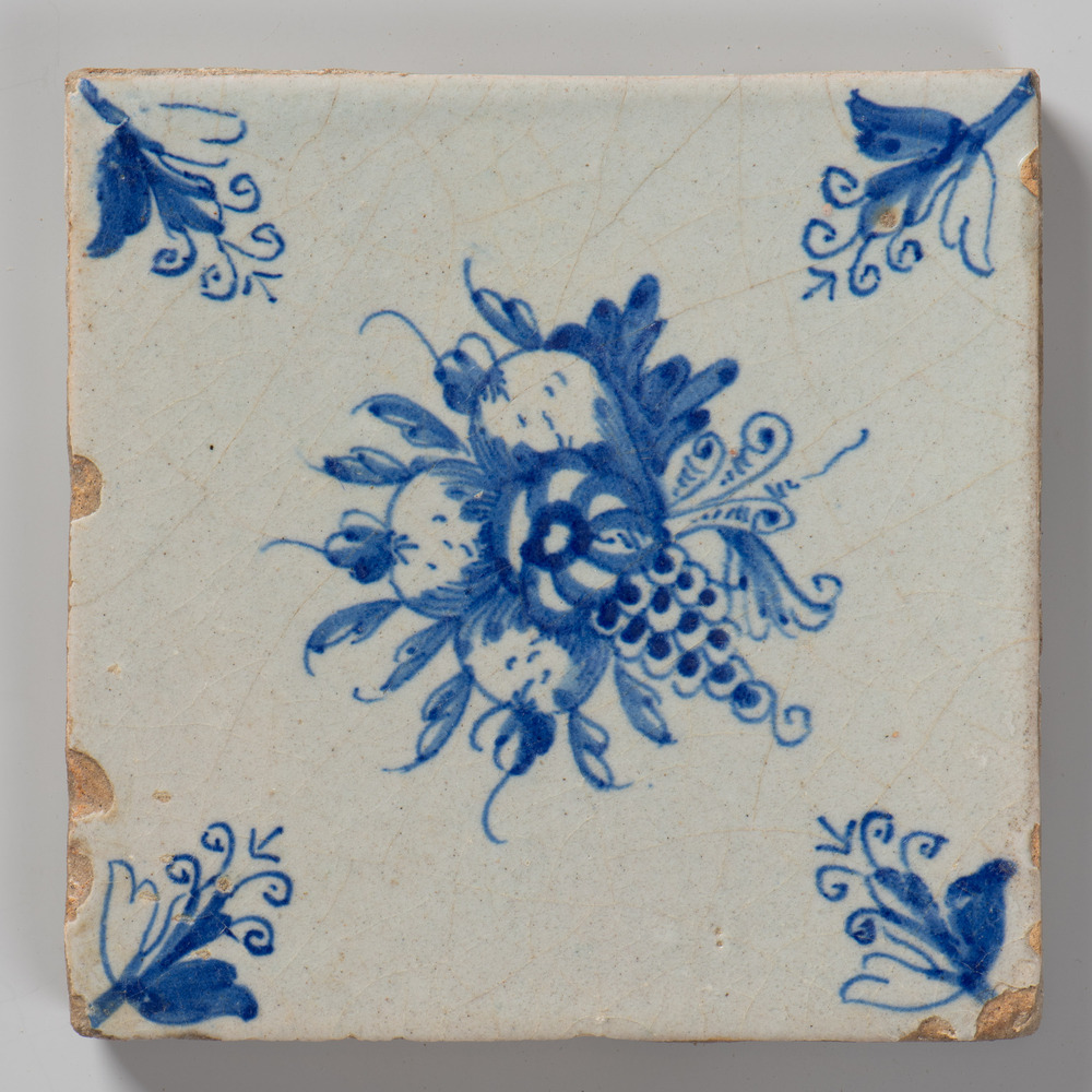 tegel van keramiek met tinglazuur, voorstellende: fr...