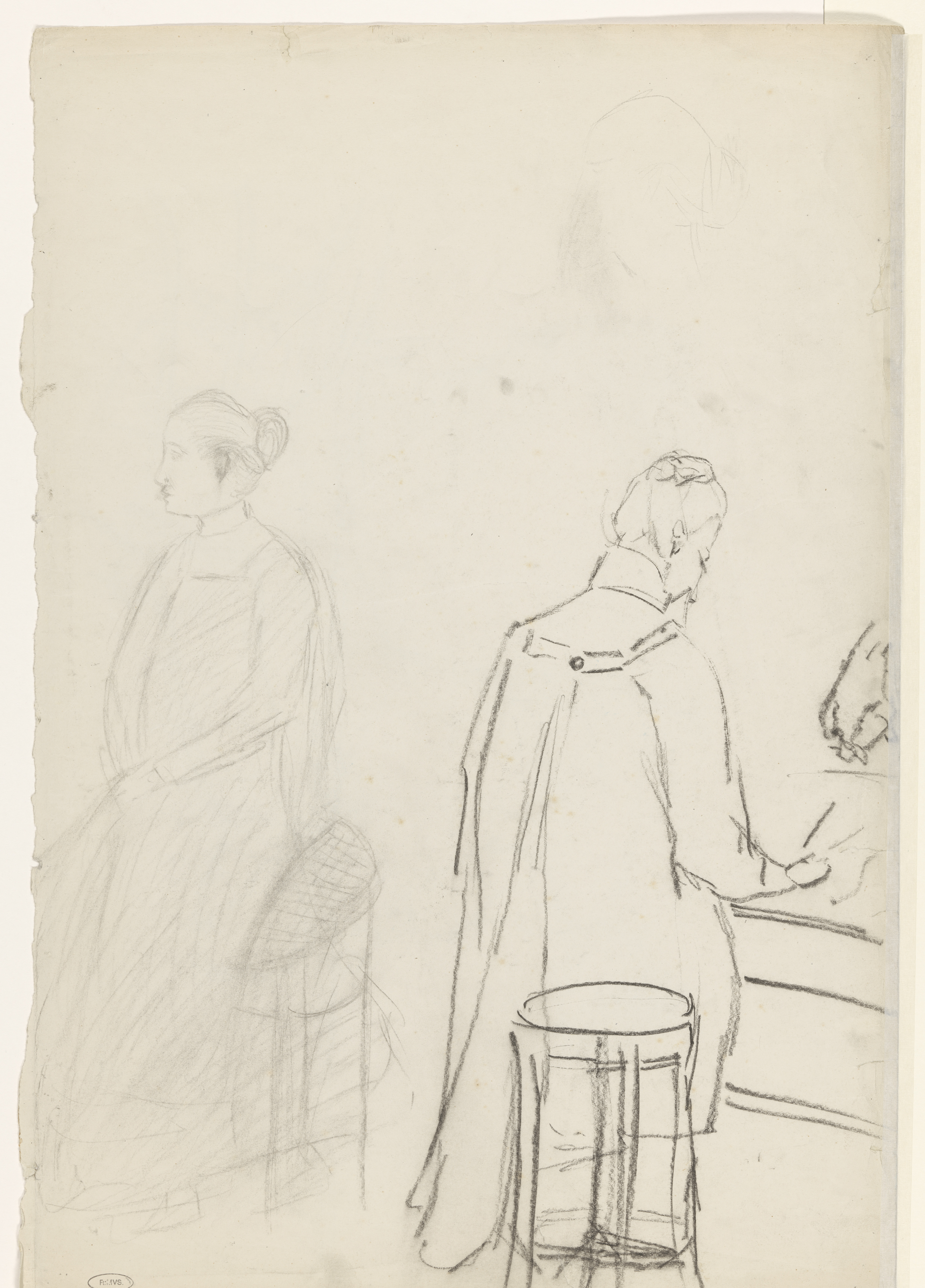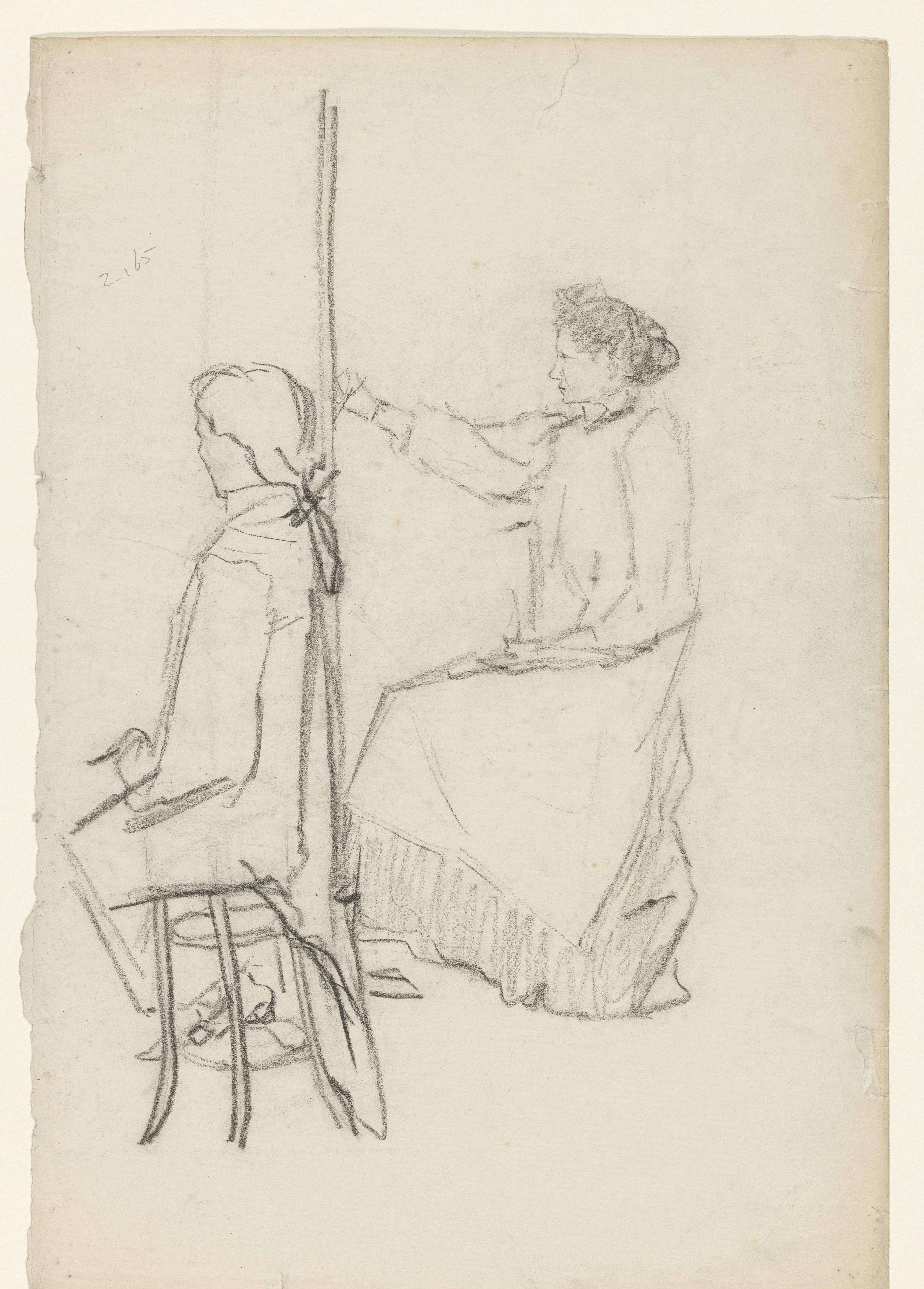 Tekenende leerling en zittende vrouw (model?)