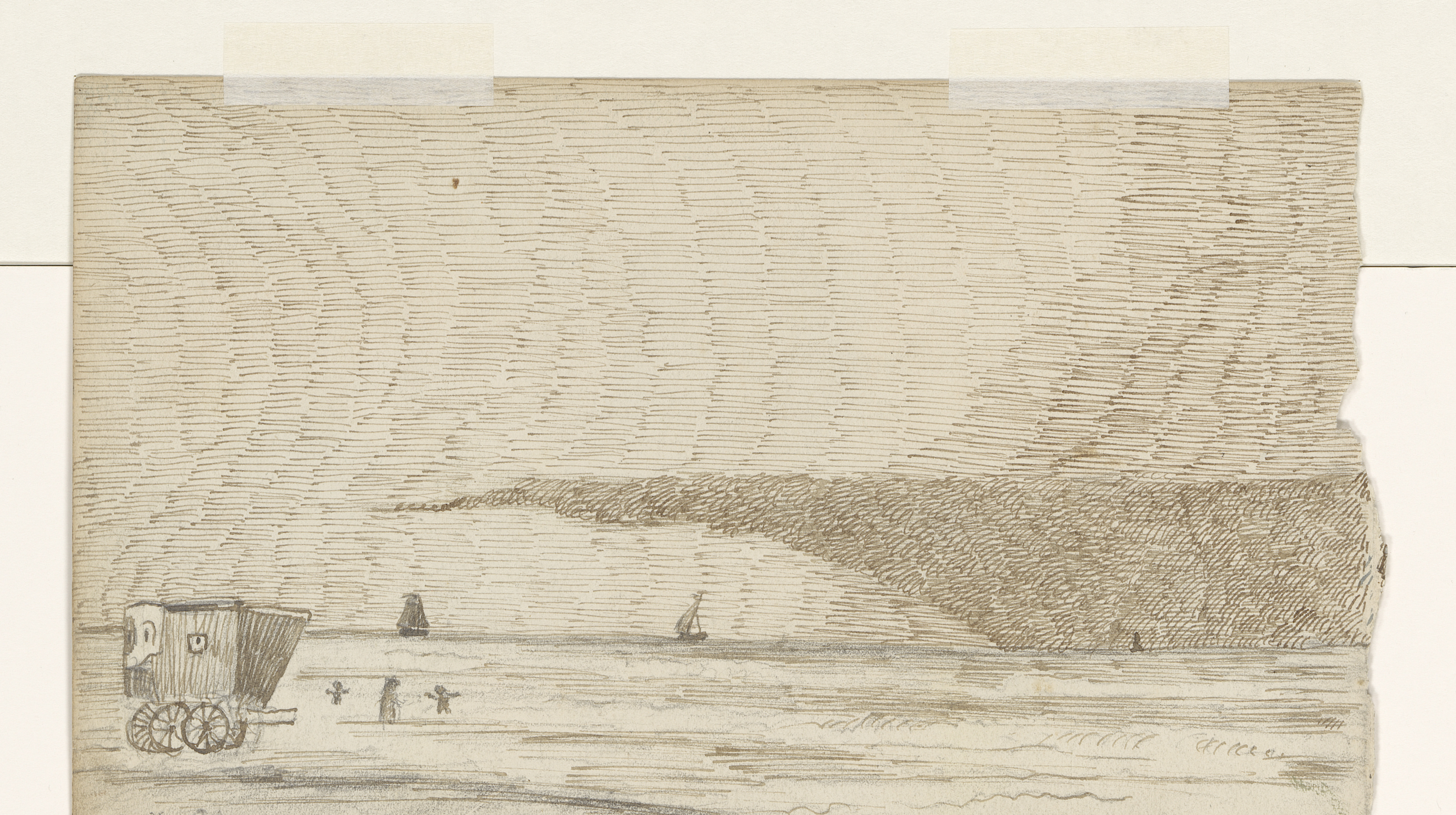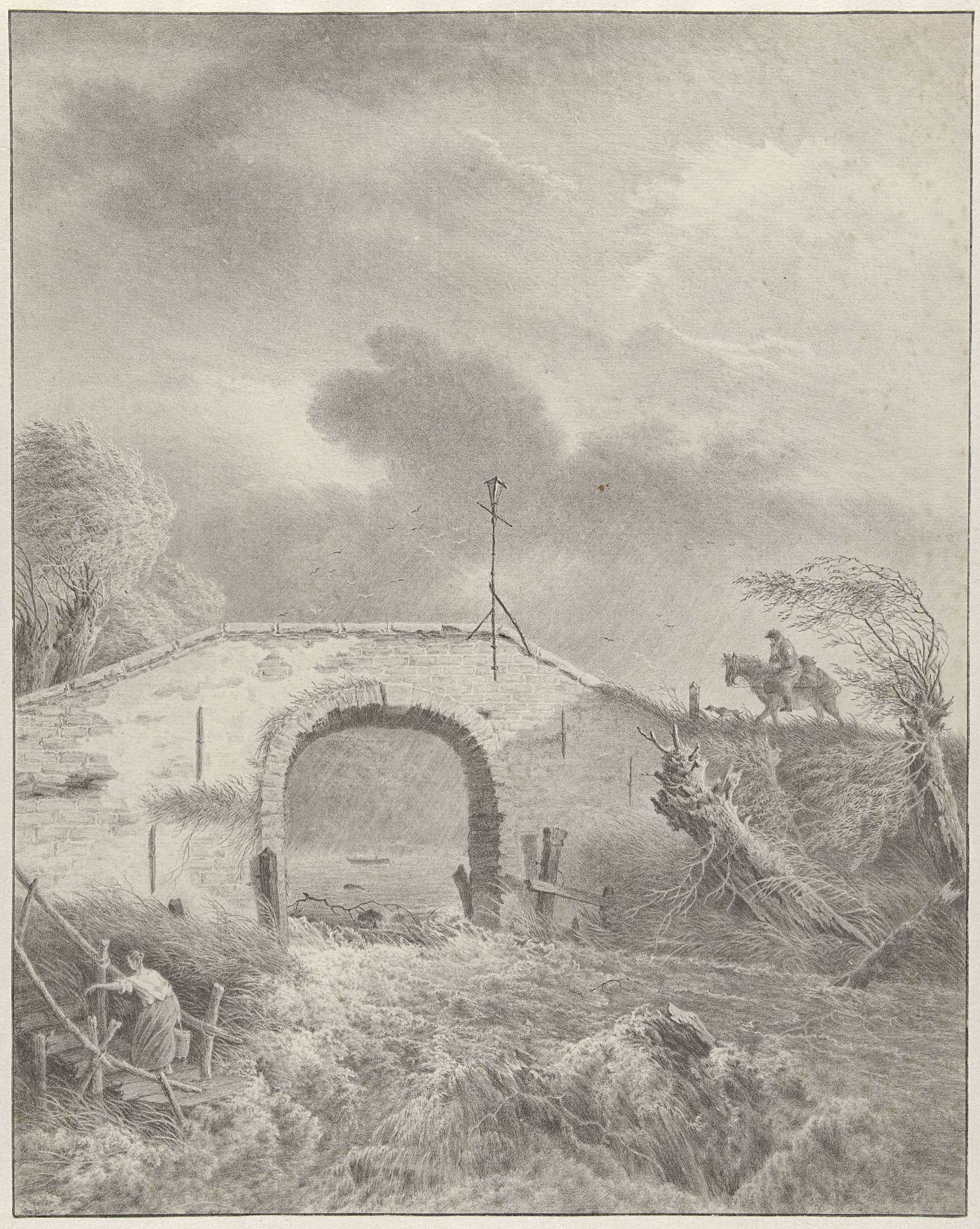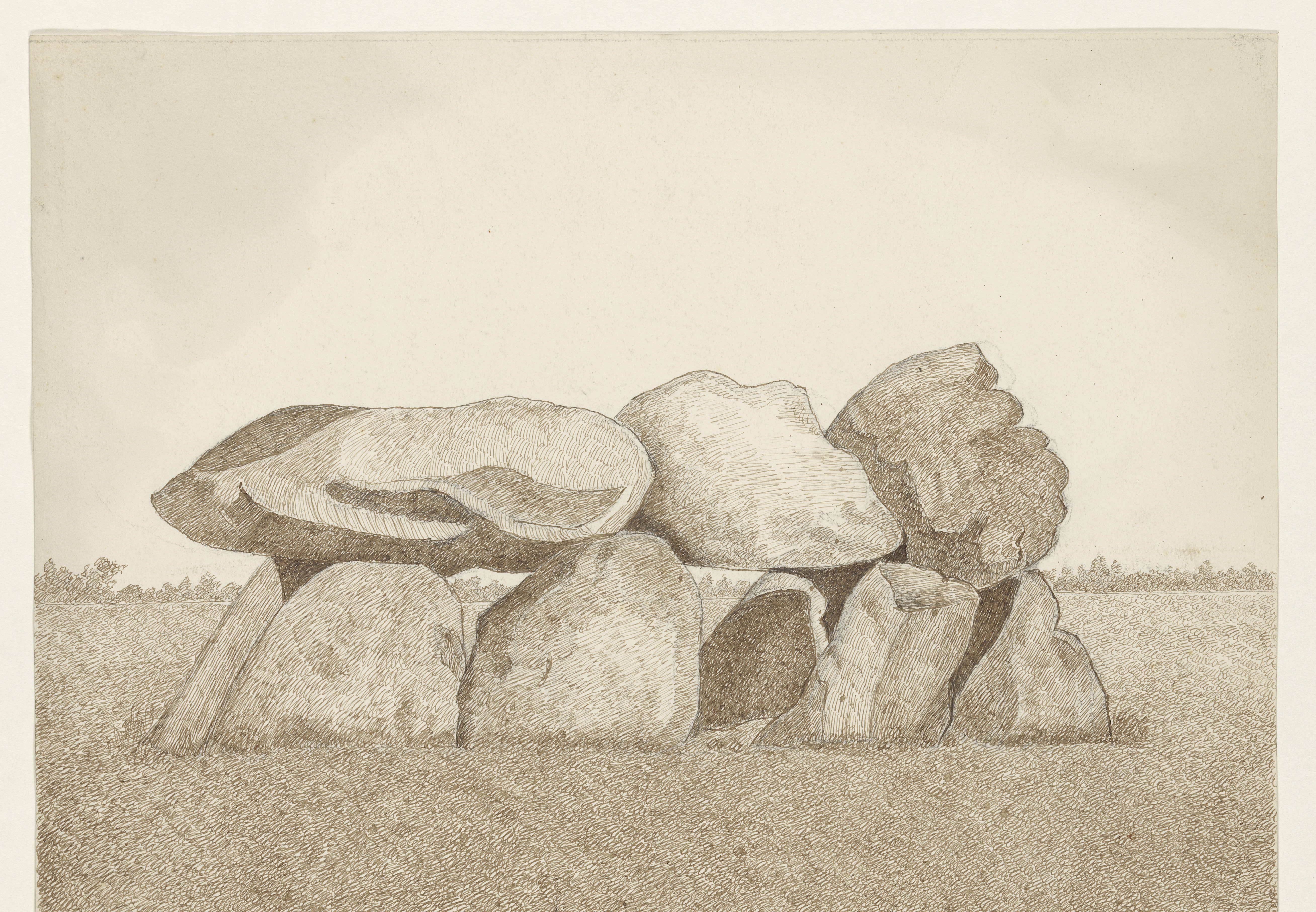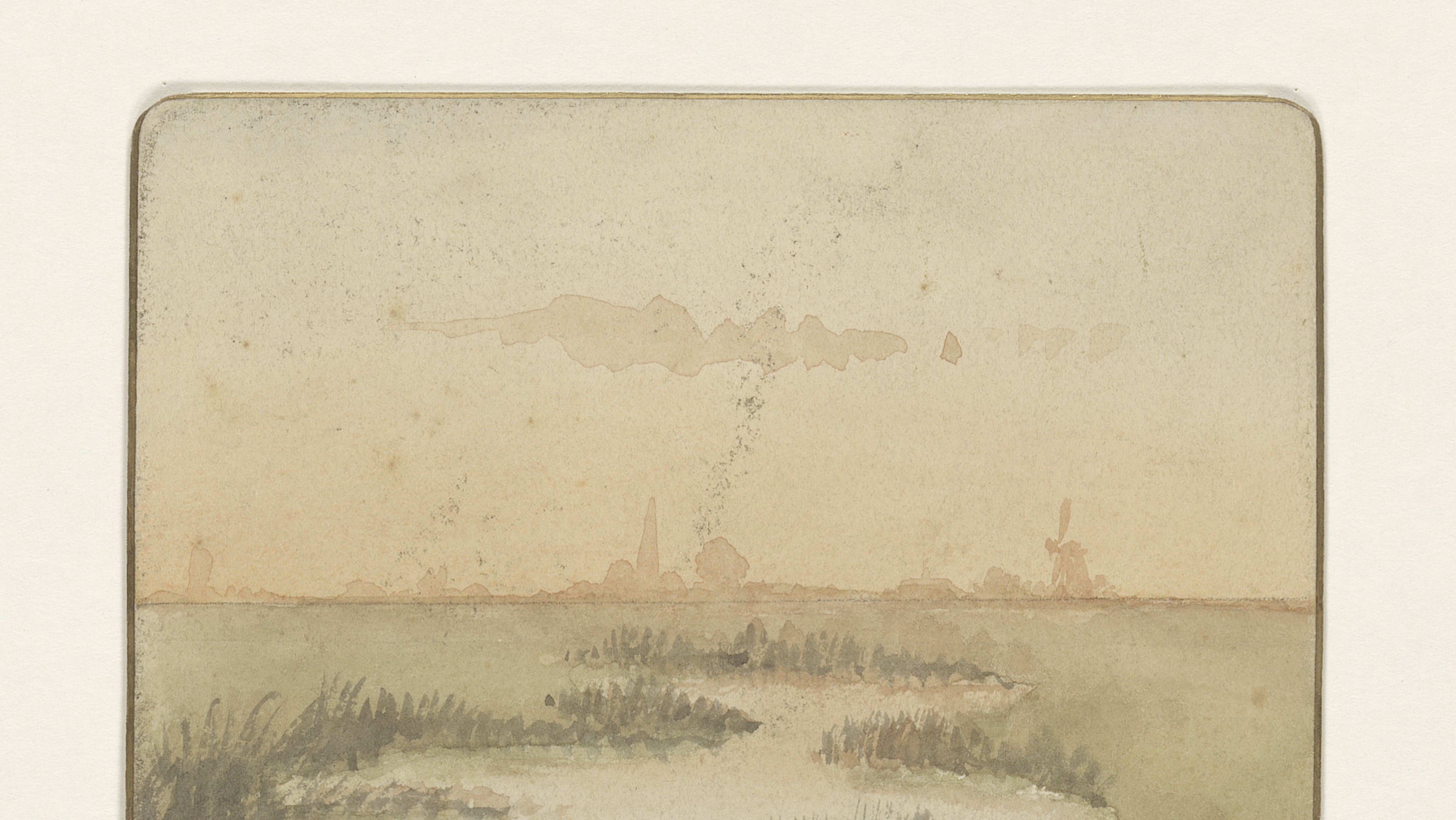 Landschap met in de verte een gebouw