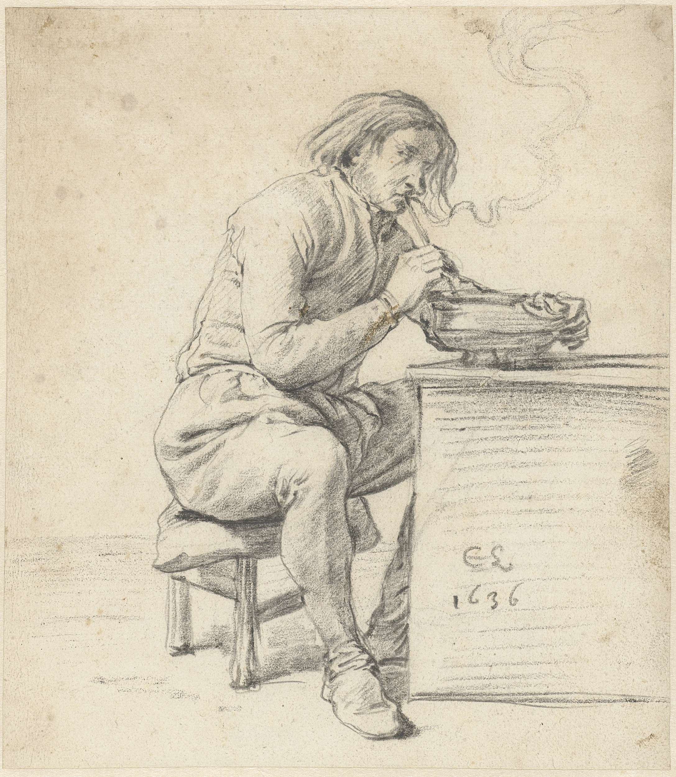Seated Man Smoking, with a Coal Pan