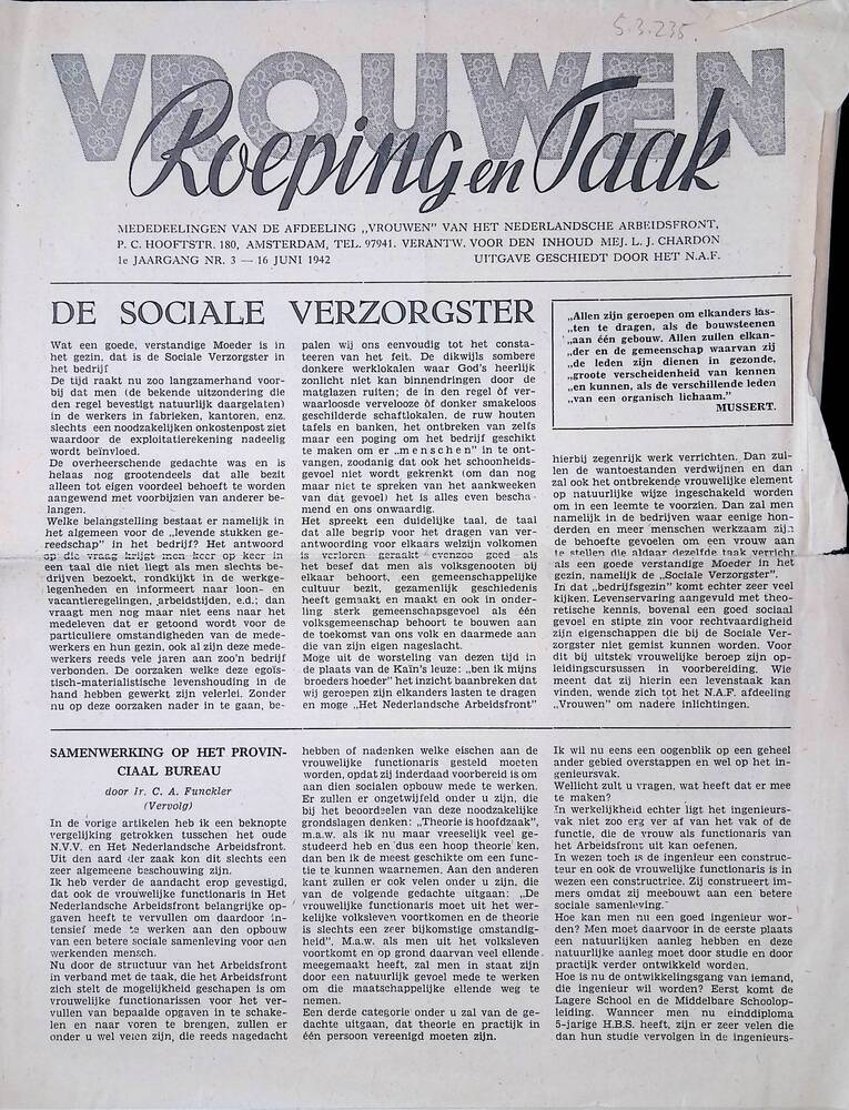 Vrouwen, Roeping en taak Jaargang 1, no 3, 16 juni 1942