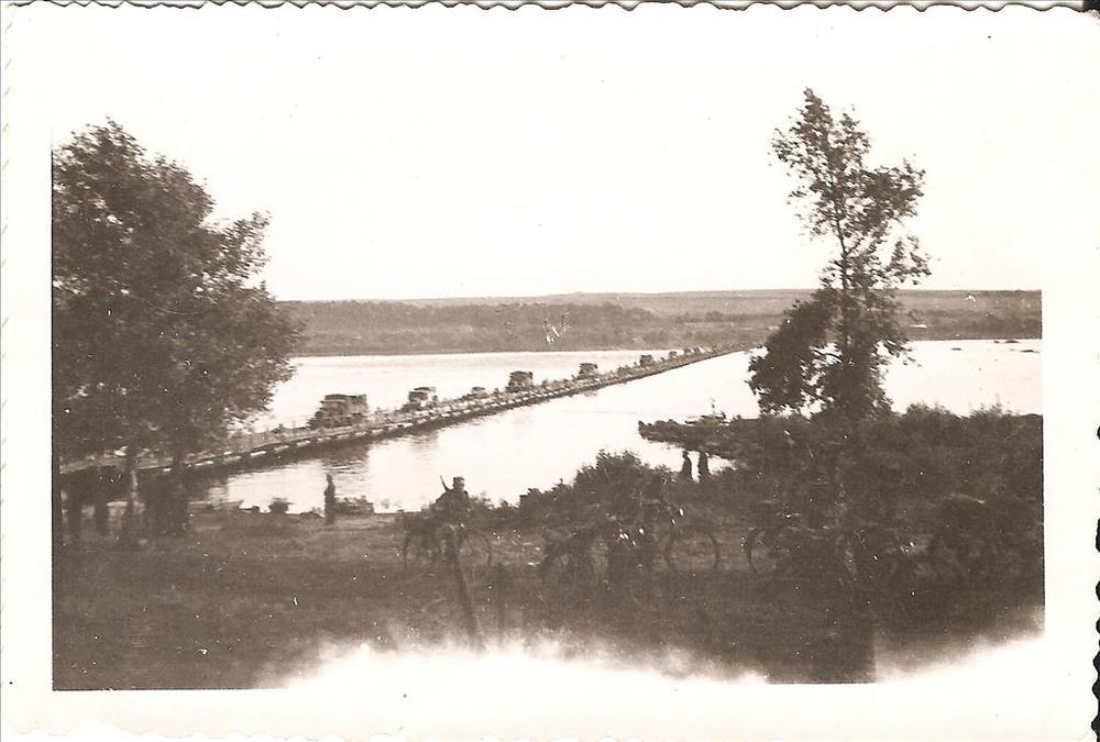 pontonbrug over een rivier met vrachtwagens