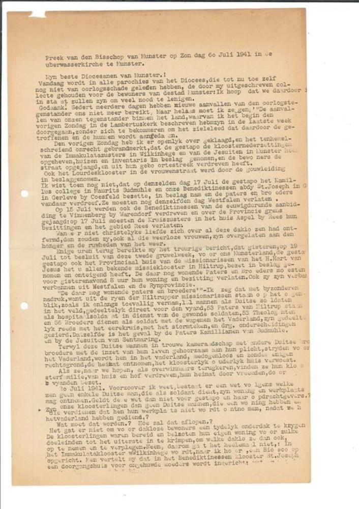 Preek van den bisschop van Münster juli 1941