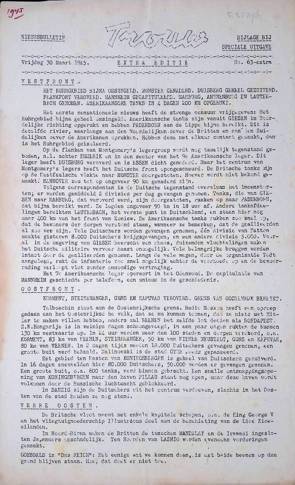 Zaans Nieuws ( Parool bulletin voor Zaandam en Omstr...