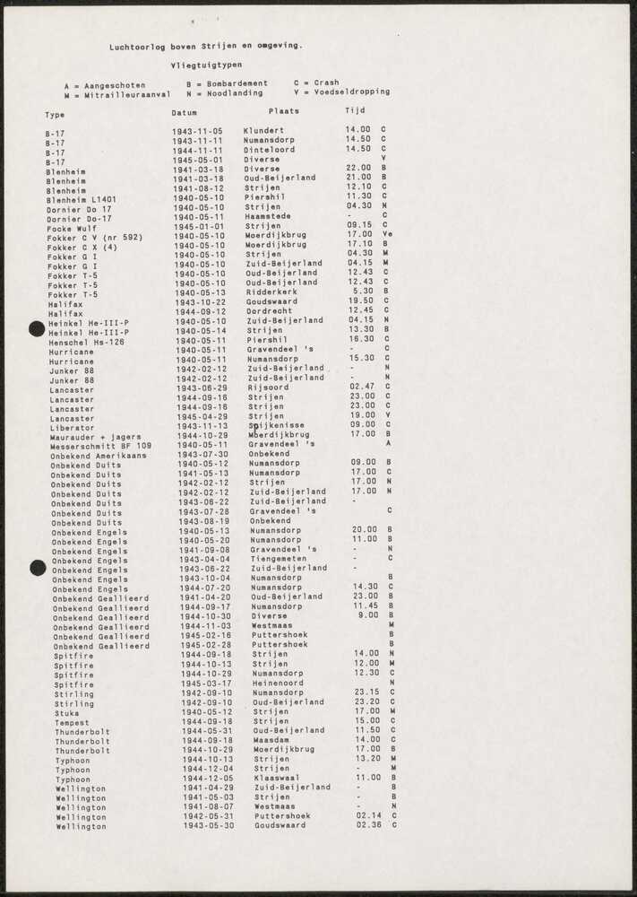 Luchtoorlog boven Strijen en omgeving.