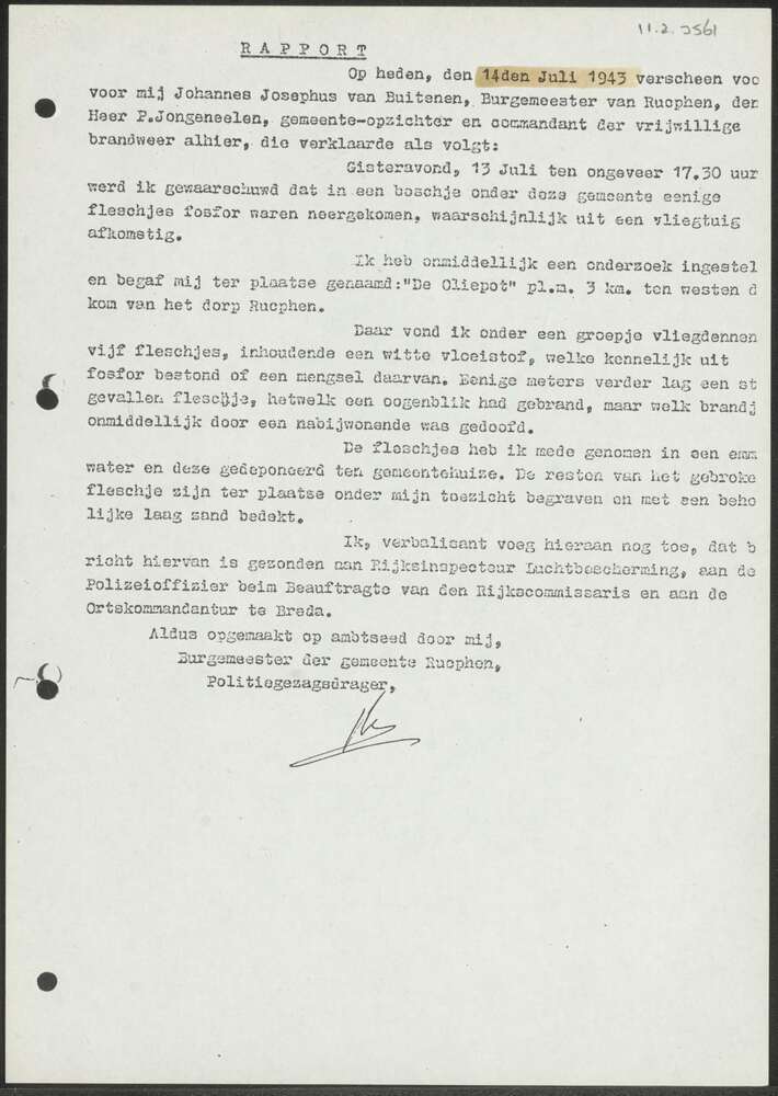 Rapport gemeente Rucphen, 14 juli 1943.