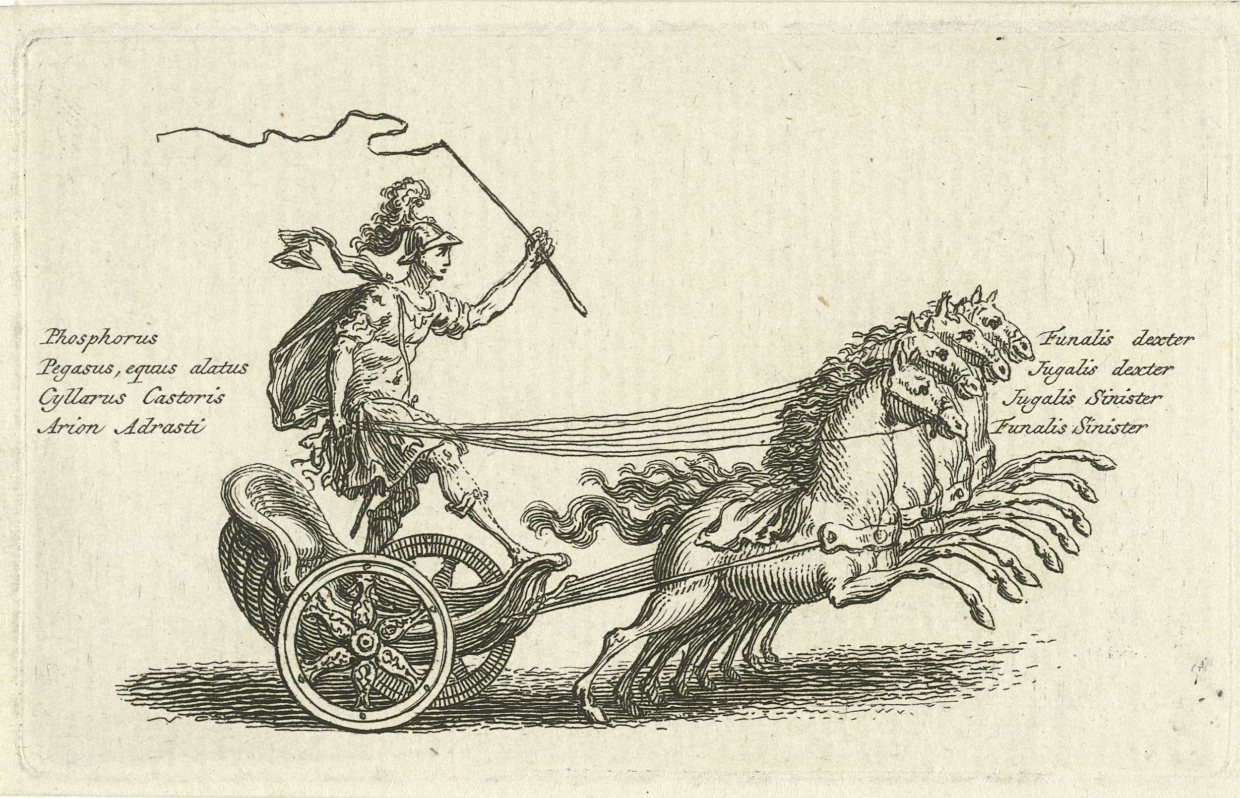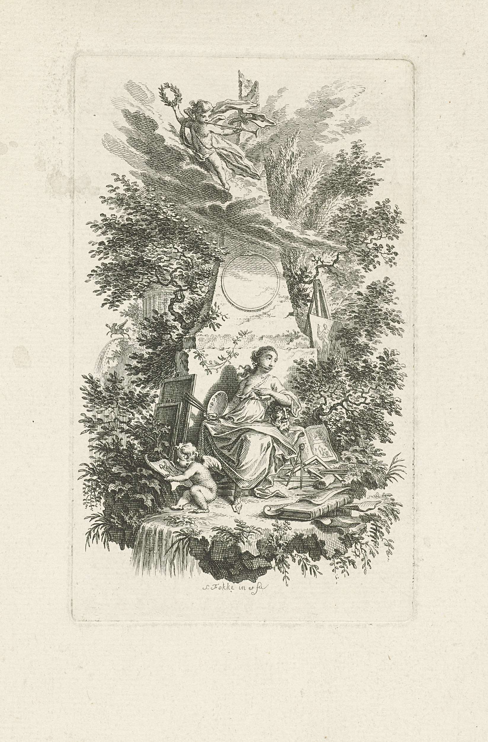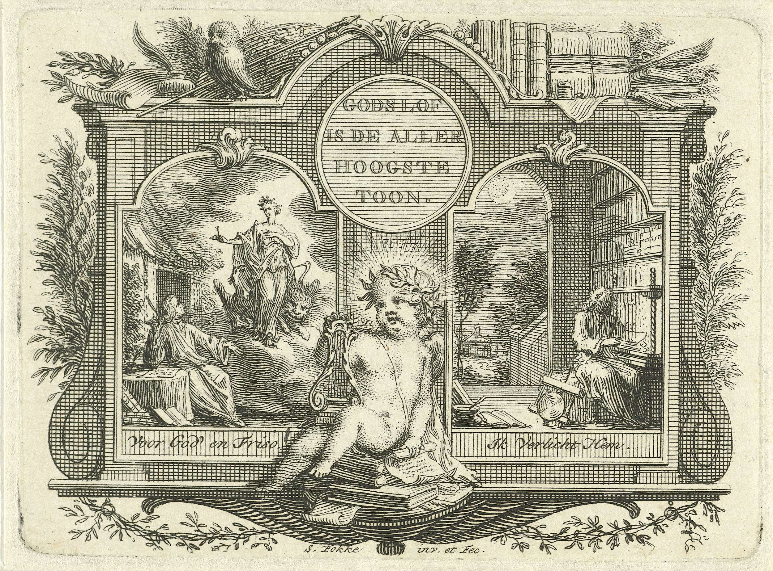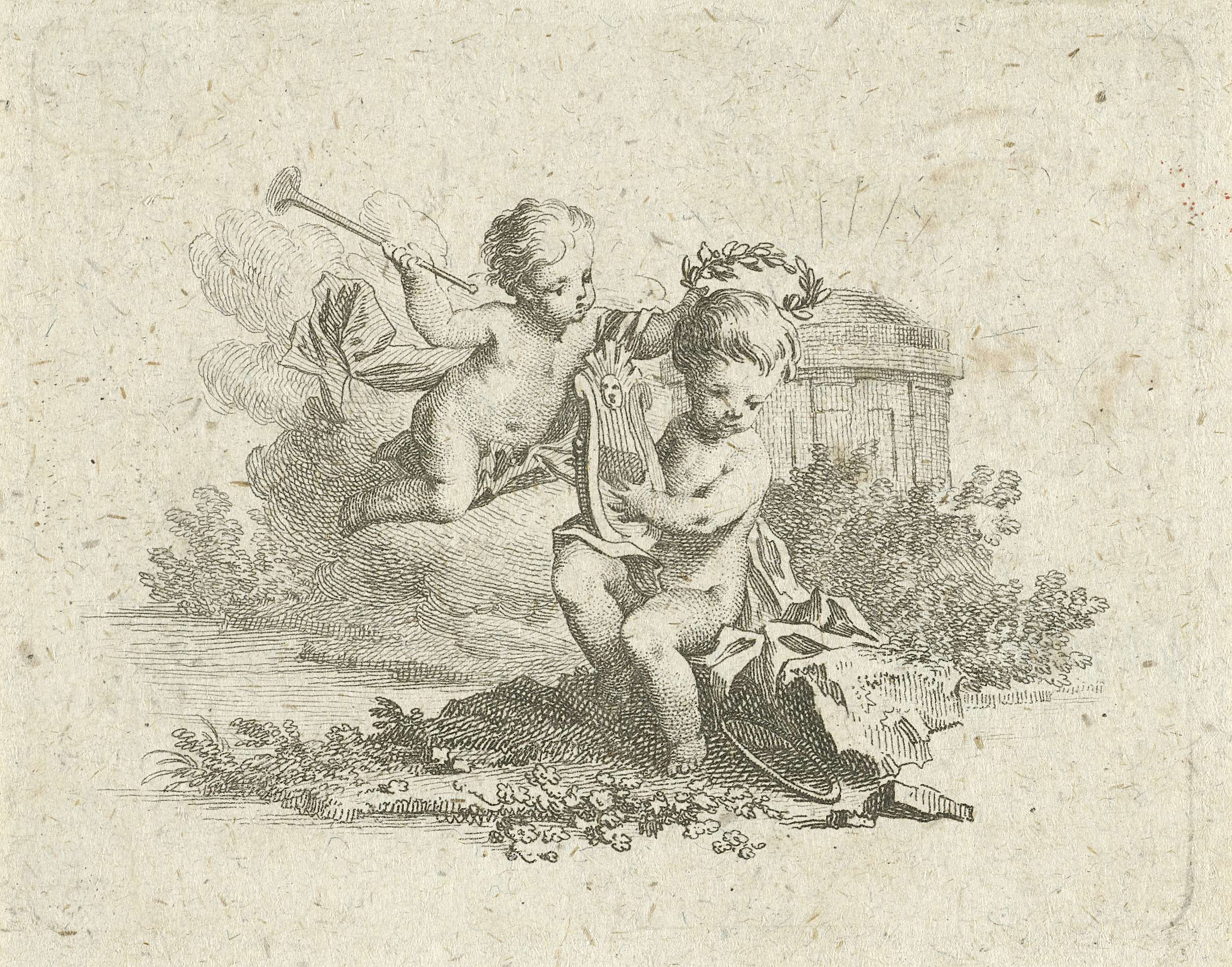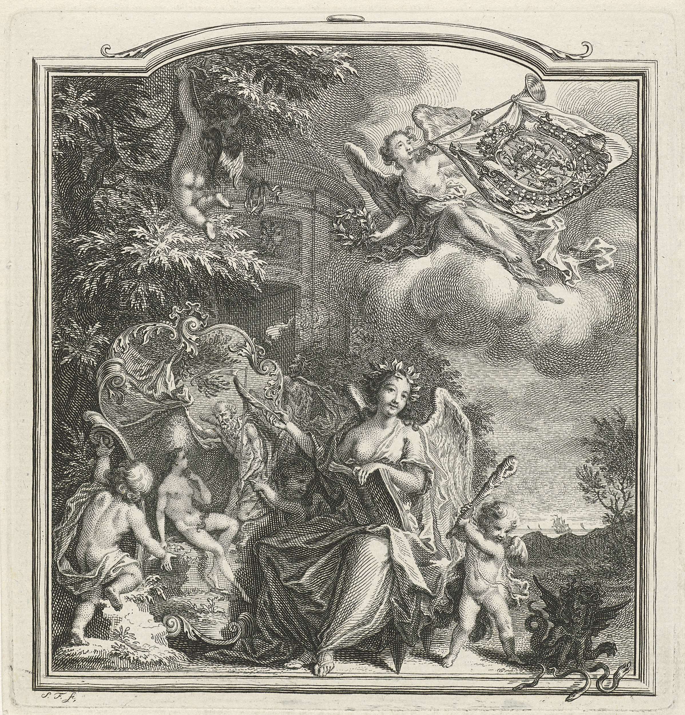 Allegorisch vignet met Minerva die een jongeman lauwert