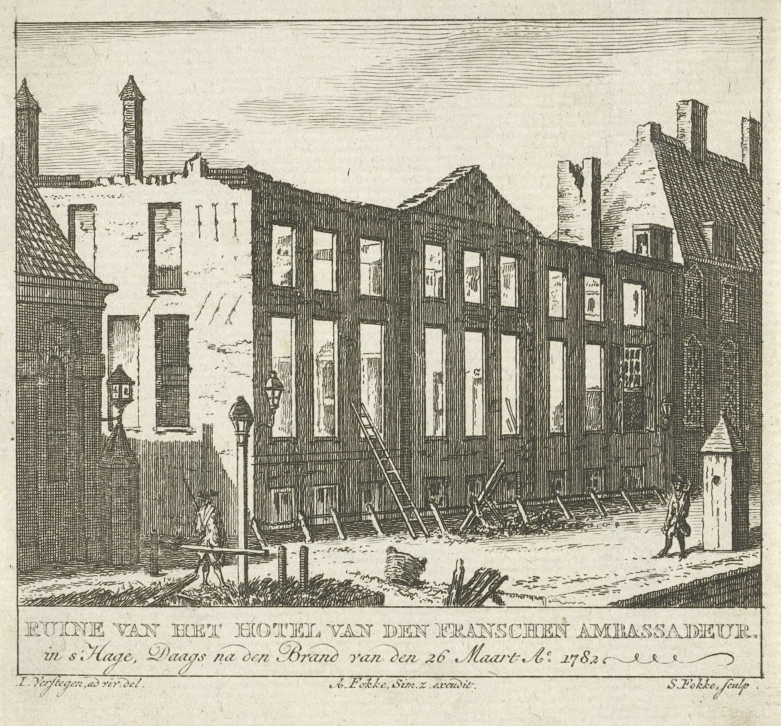 Uitgebrand huis van de Franse ambassadeur te Den Haa...