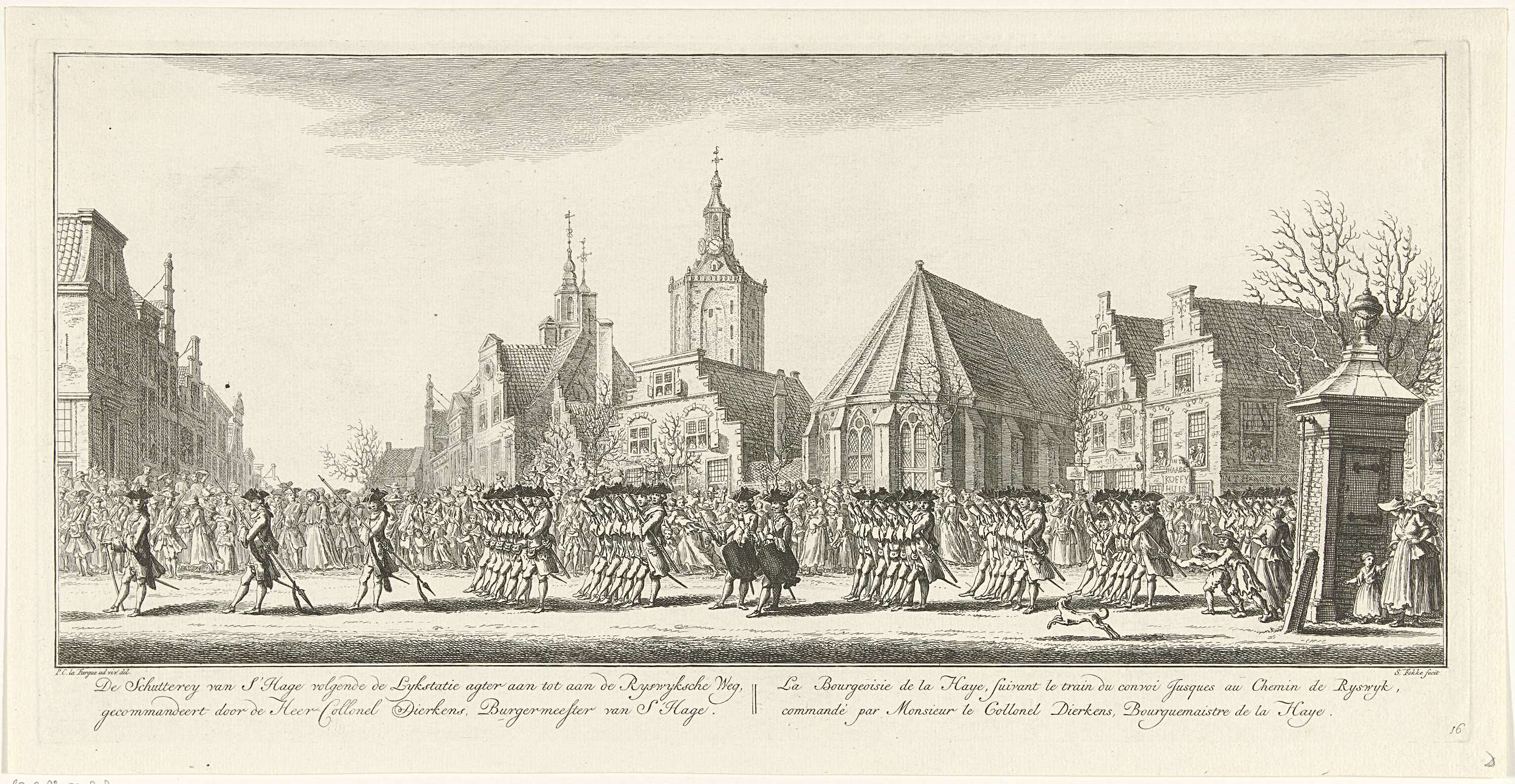 Haagse schutterij in de lijkstoet van Anna van Hanno...