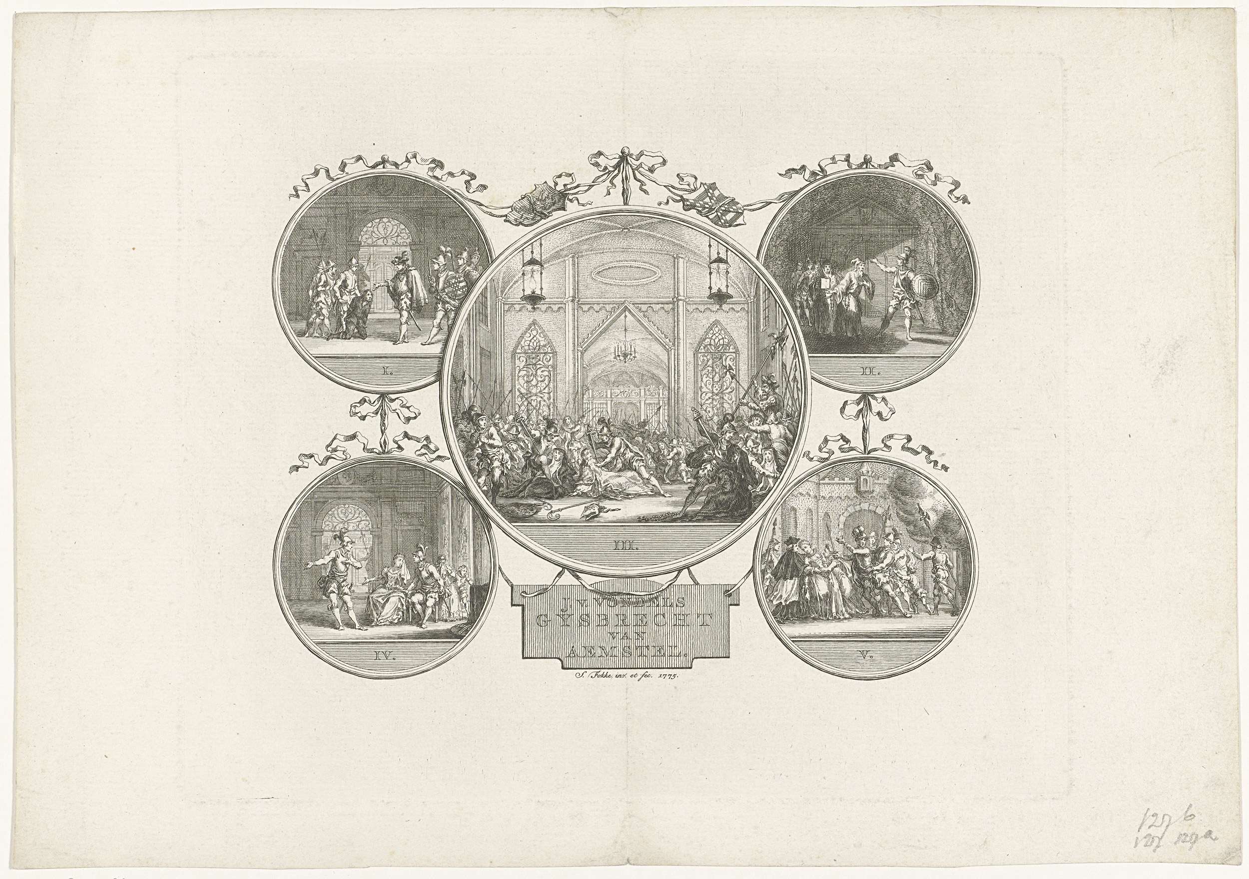 Vijf scènes uit het toneelstuk Gijsbrecht van Aemstel