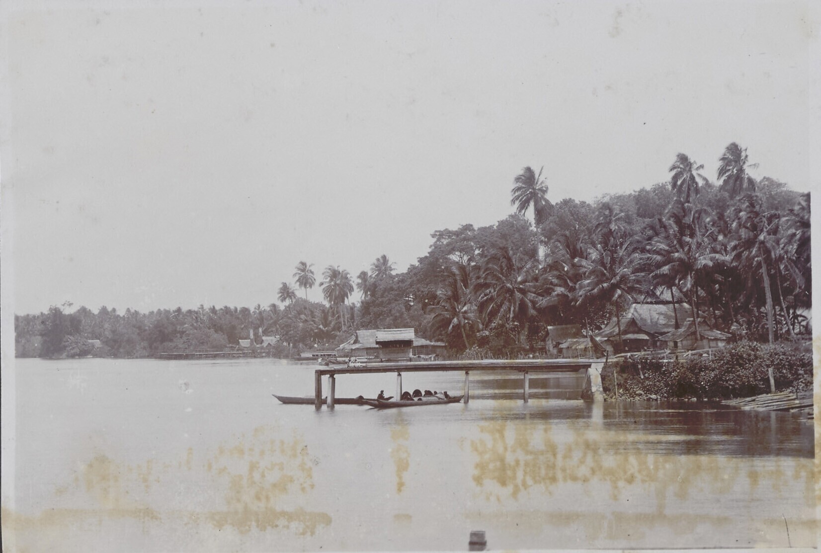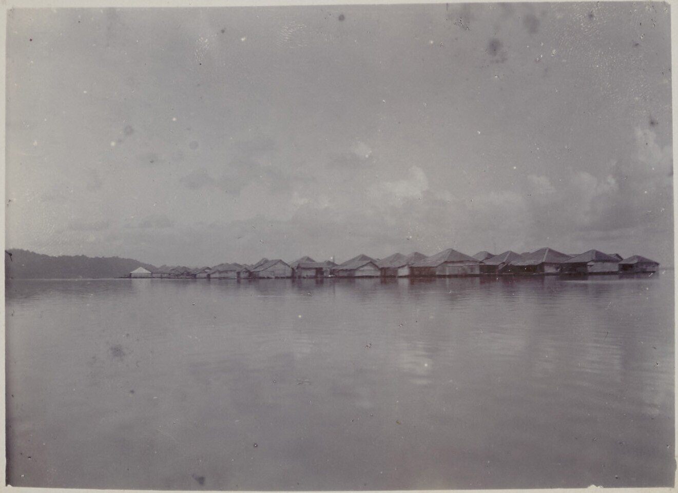 Uitzicht op een paalwoningendorp aan de kust