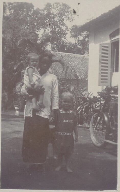 De Javaanse kinderverzorgster poseert met een Nederl...