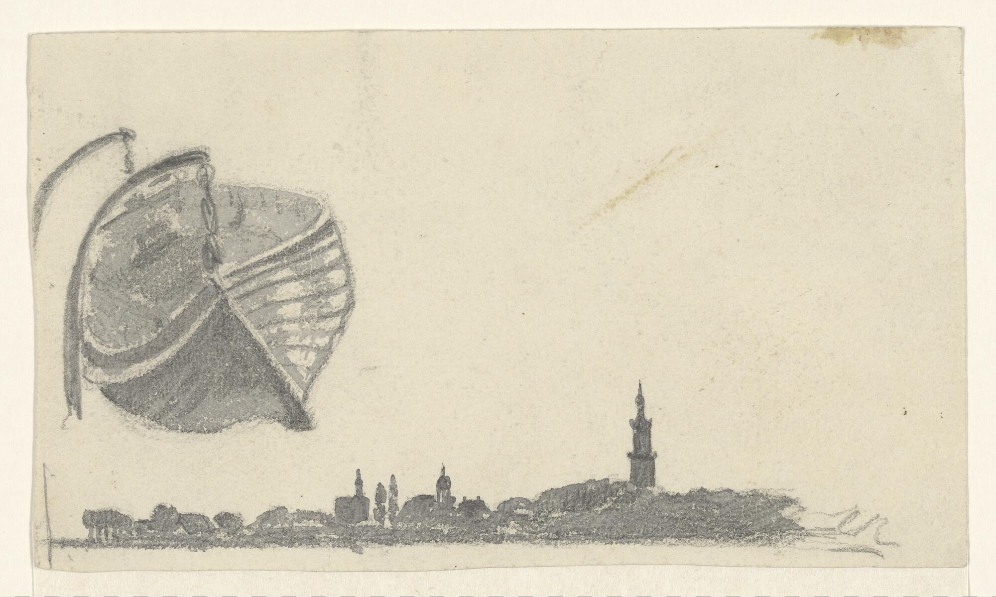 Profiel van Enkhuizen, een sloep hangend in de davits