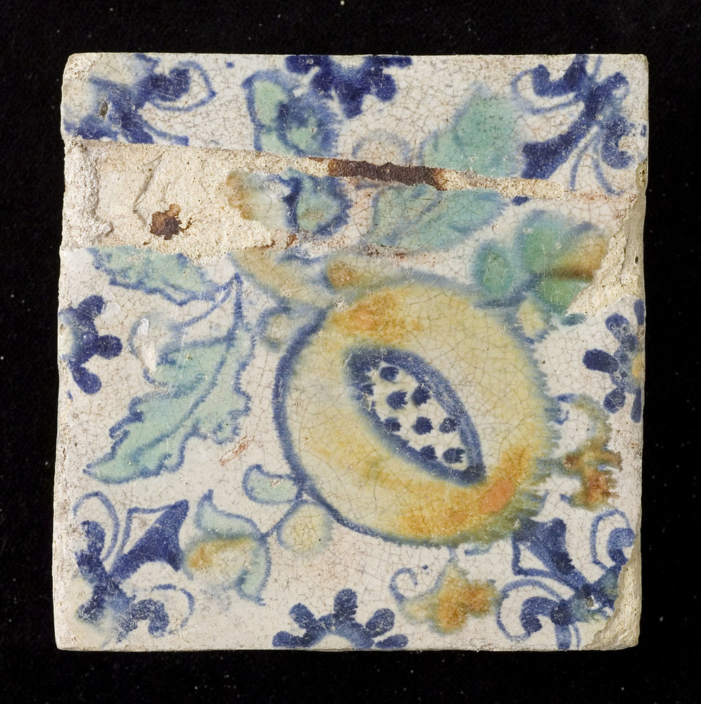 Tegel van keramiek met tinglazuur, voorstellende: or...