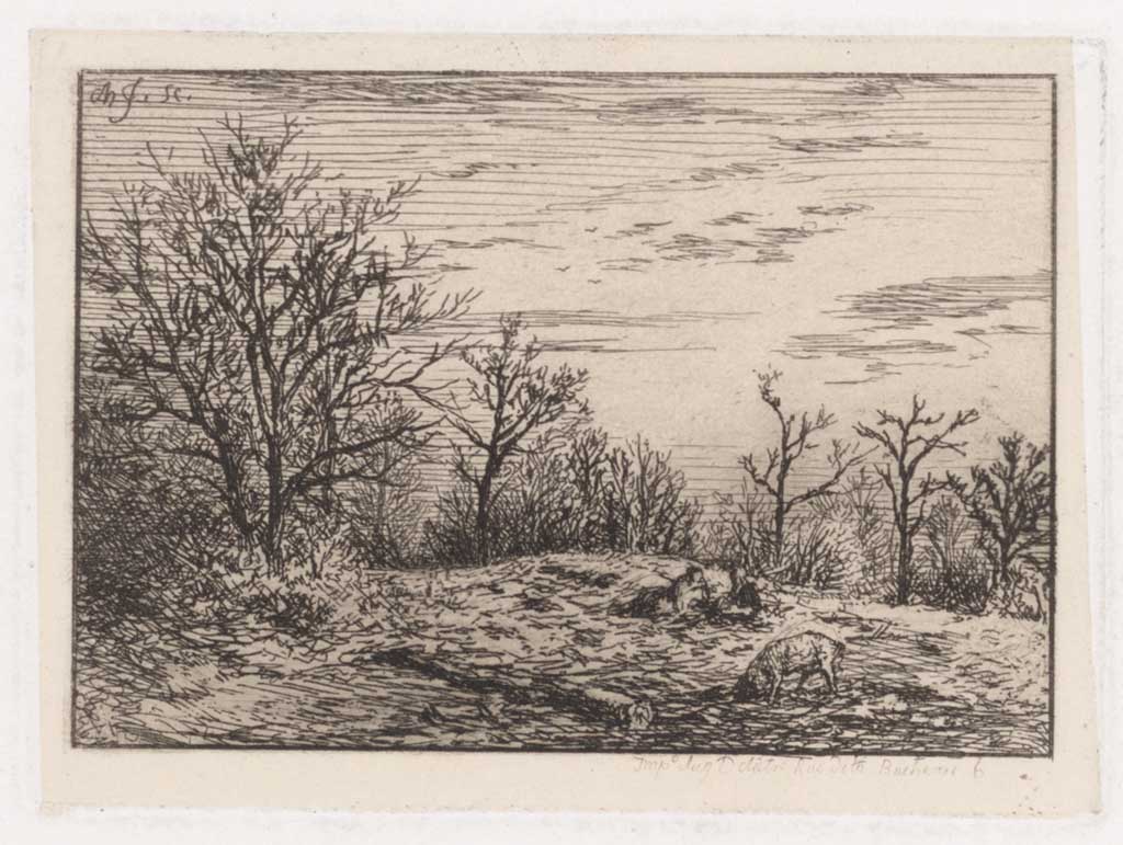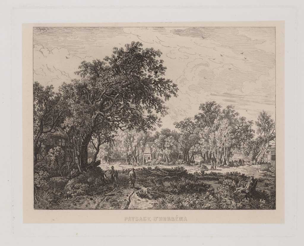 Landschap naar Hobbema: fr. titel: Paysage d'Hobbéma