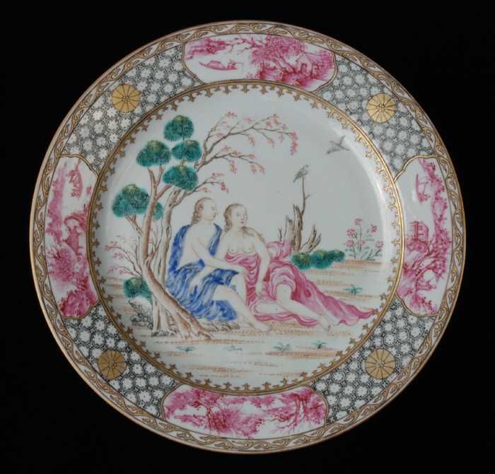 Bord van Chinees porselein met afbeelding liefdespaar