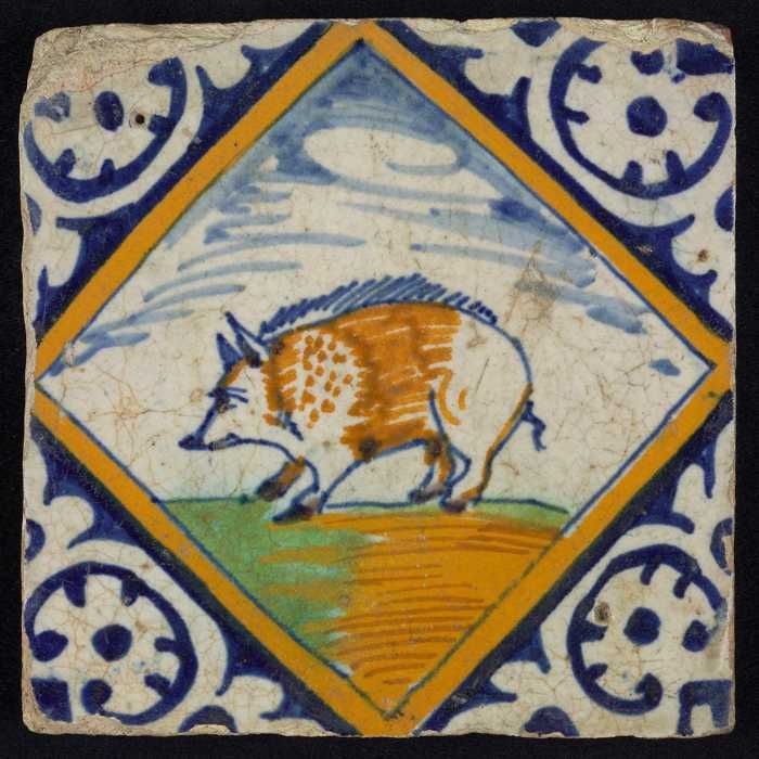 Dierentegel, zwijn in kwadraat, hoekmotief palmethoek