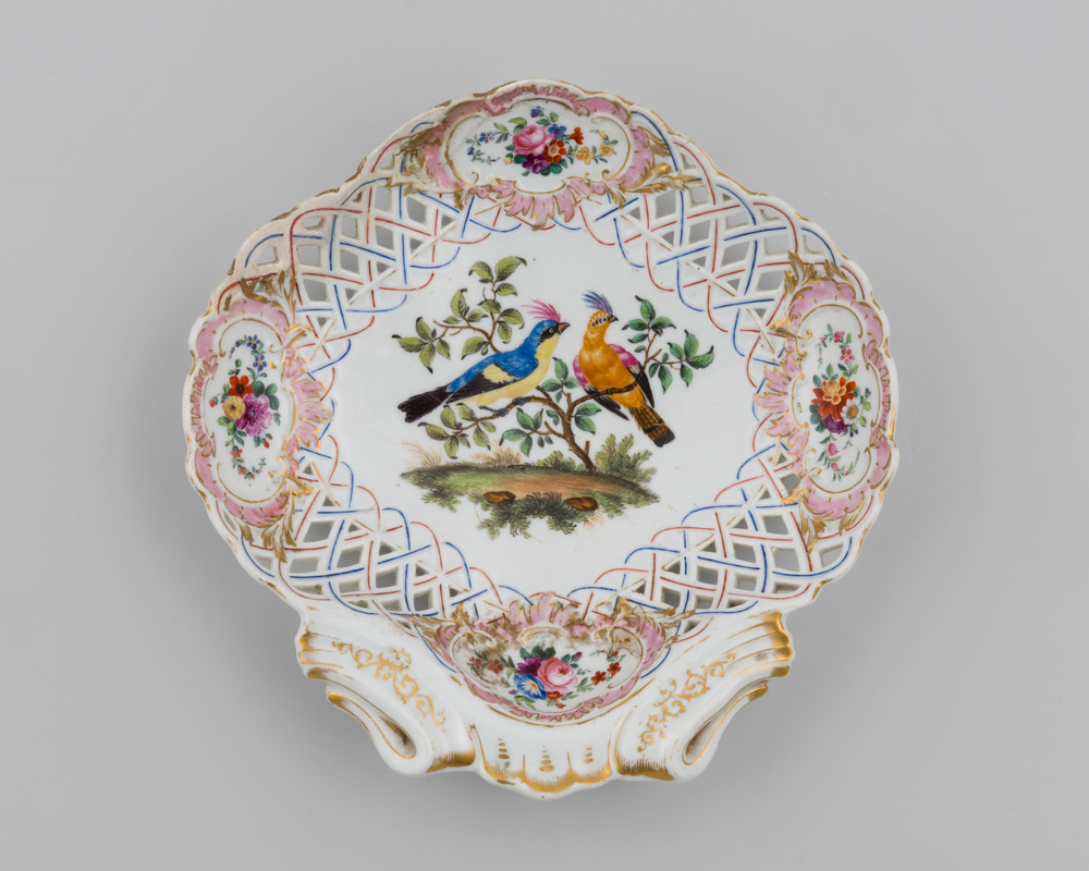 Schelpvormige schaal met vogels
