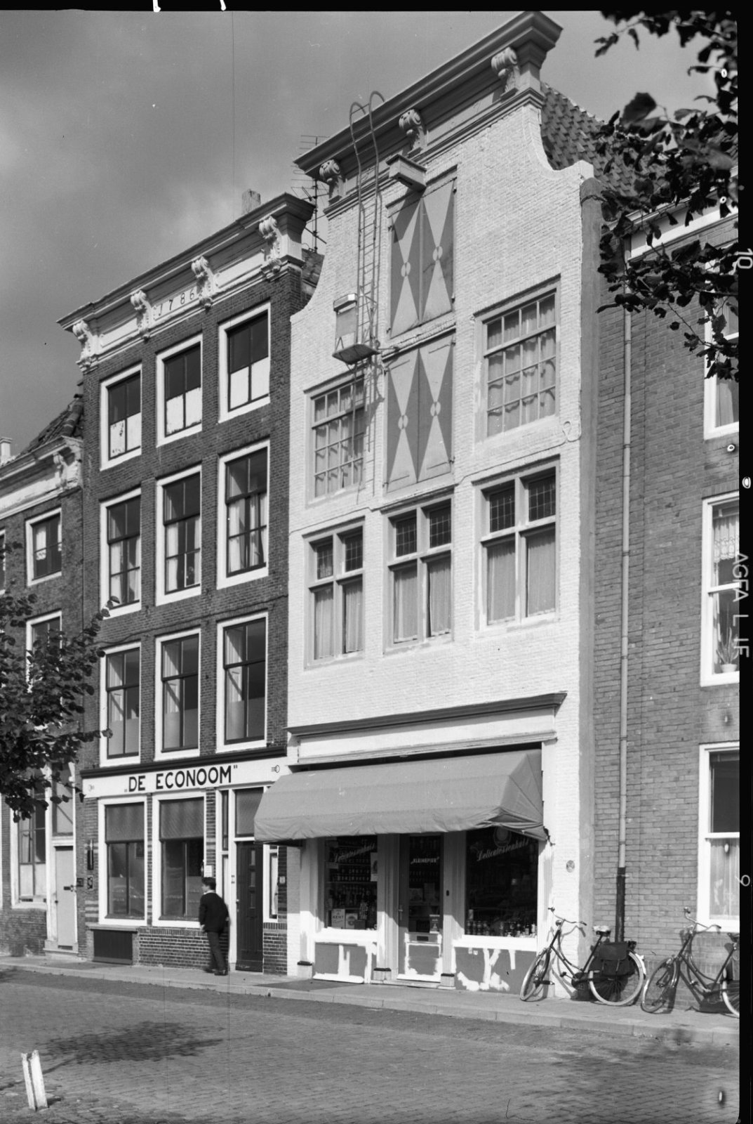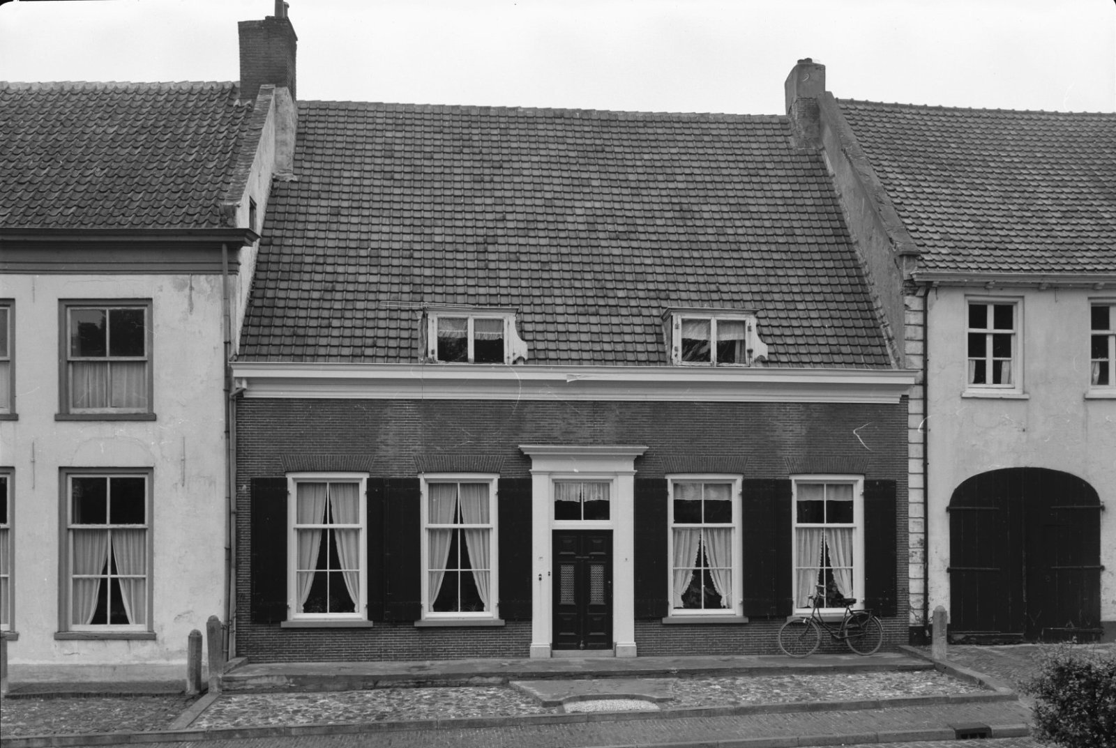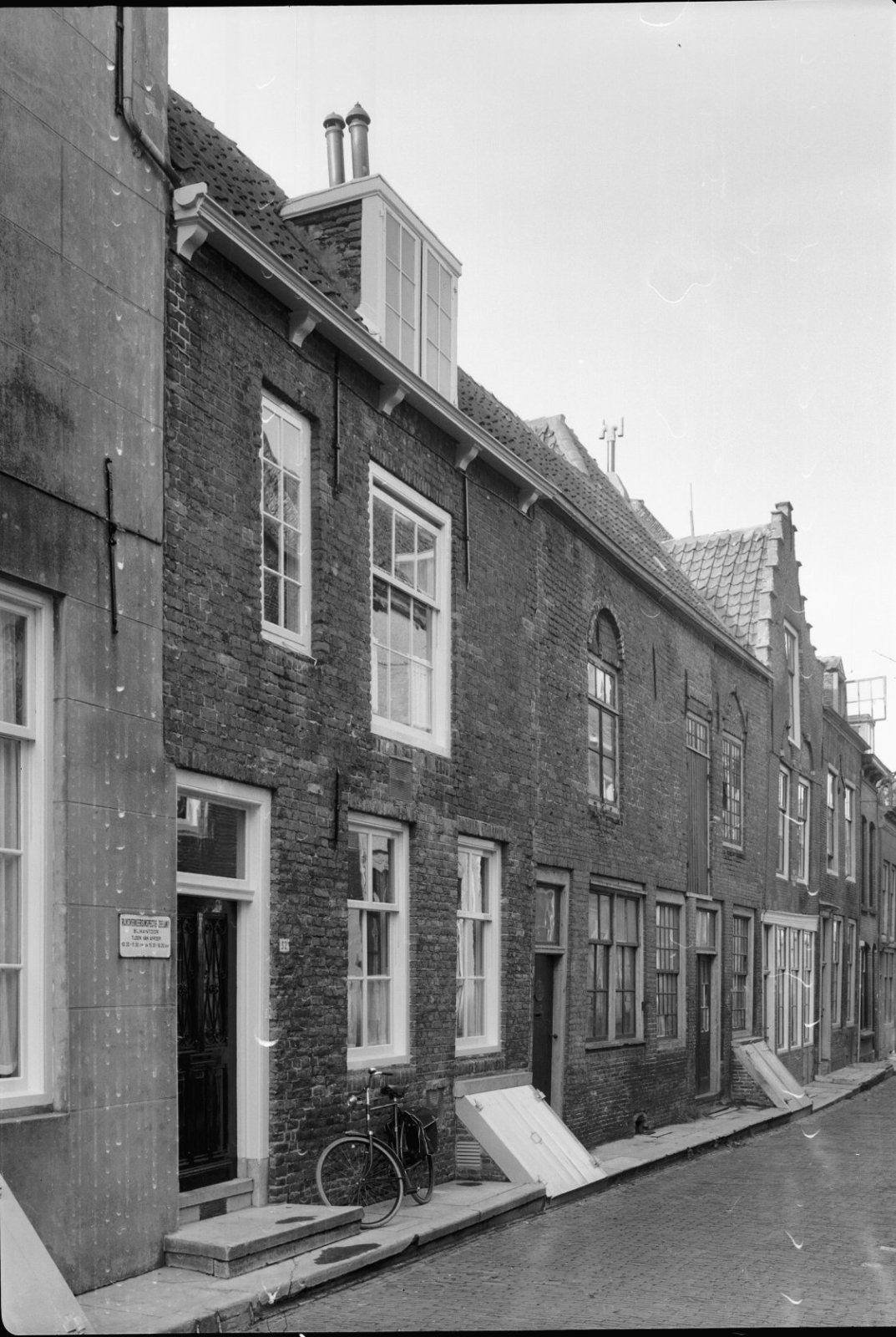 Overzicht van voorgevels met stoep en kelderluiken