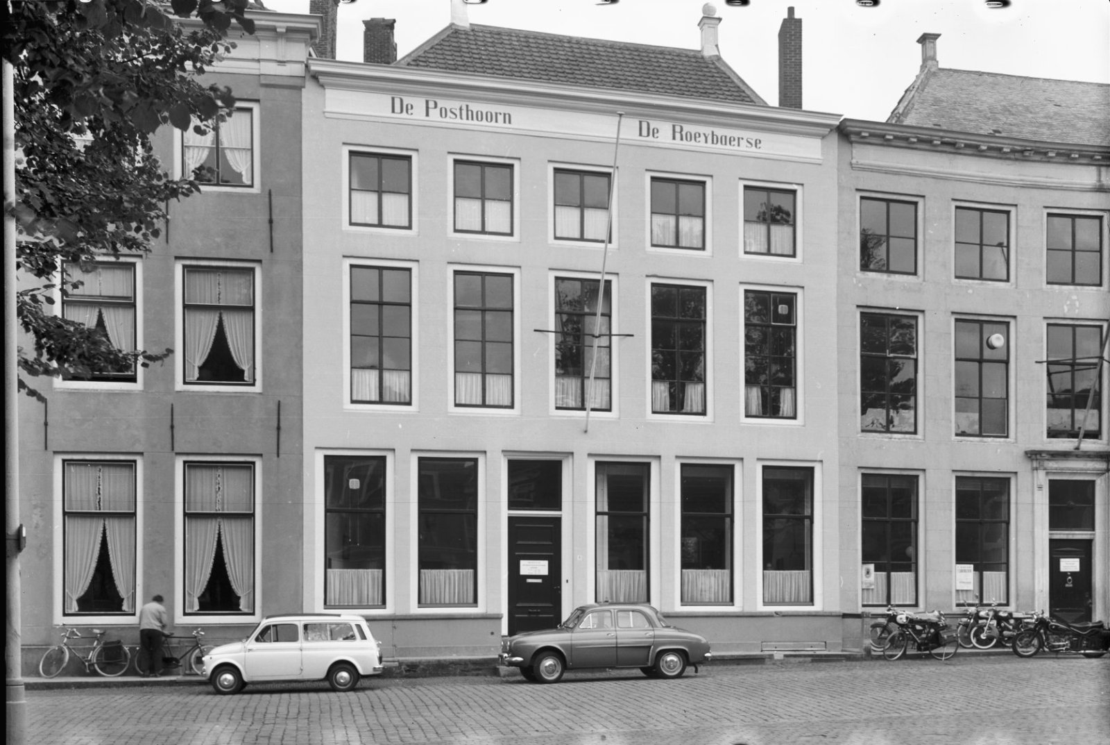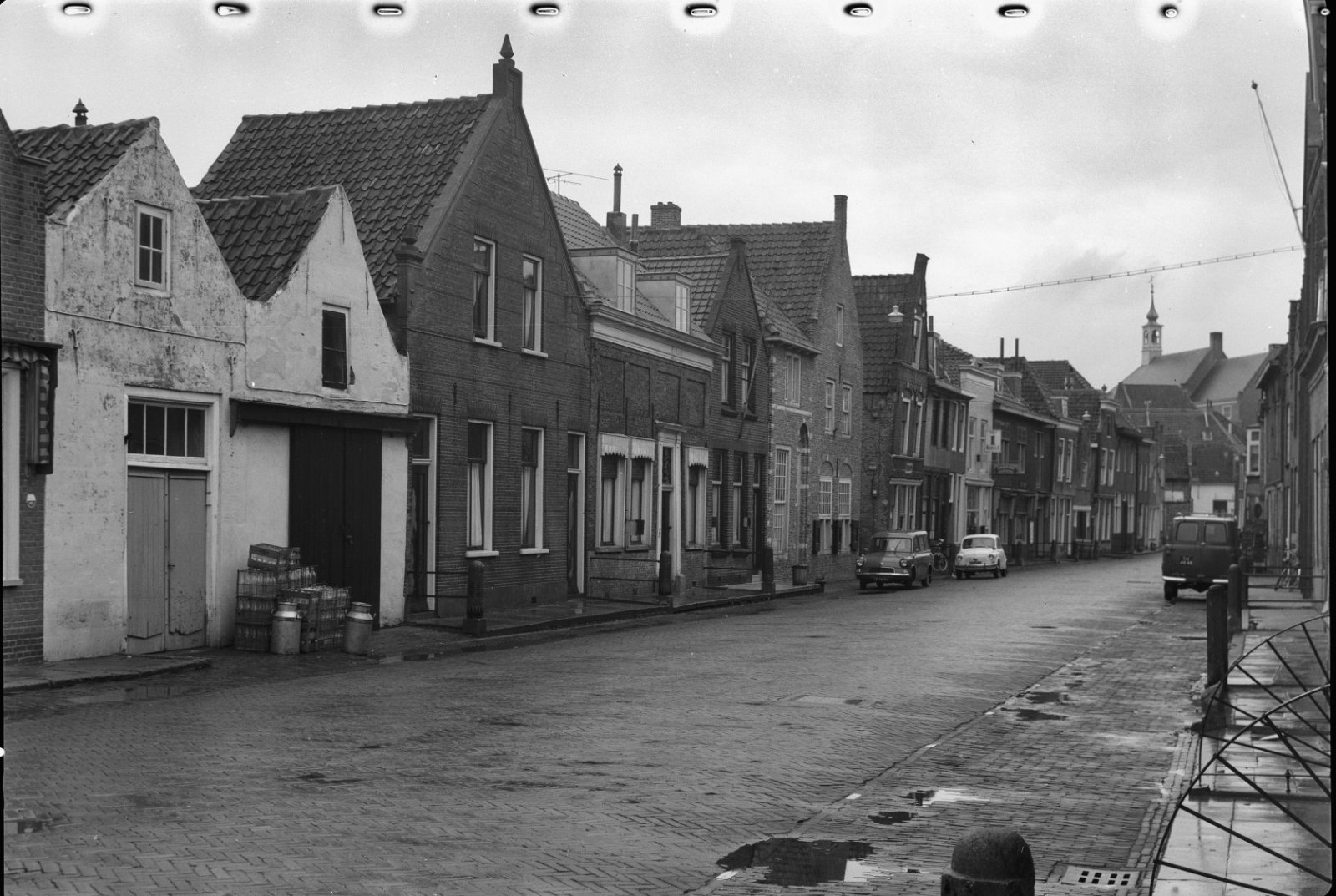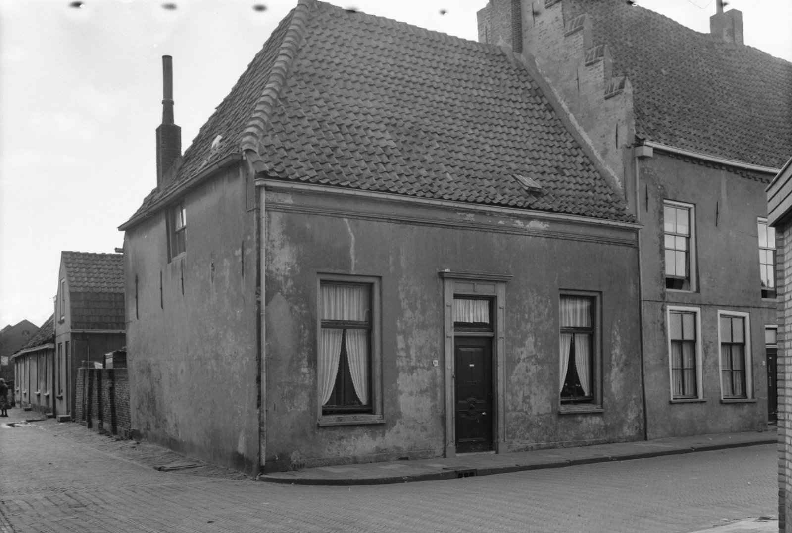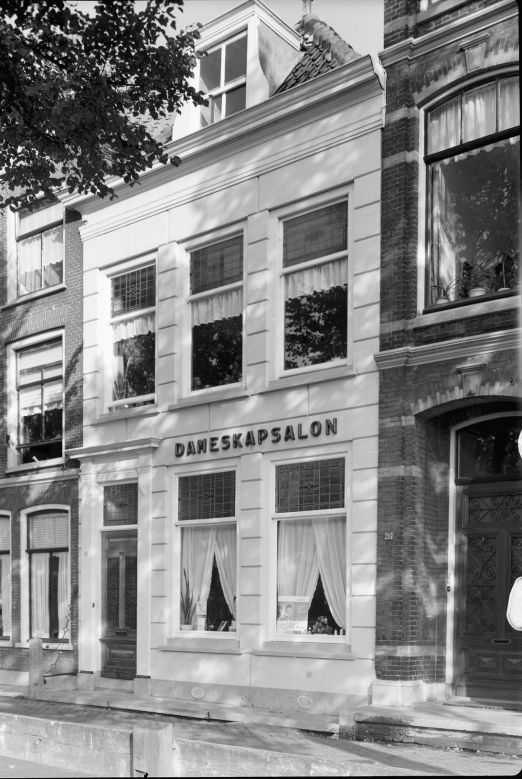 Overzicht van voorgevels met stoep en kelderluiken