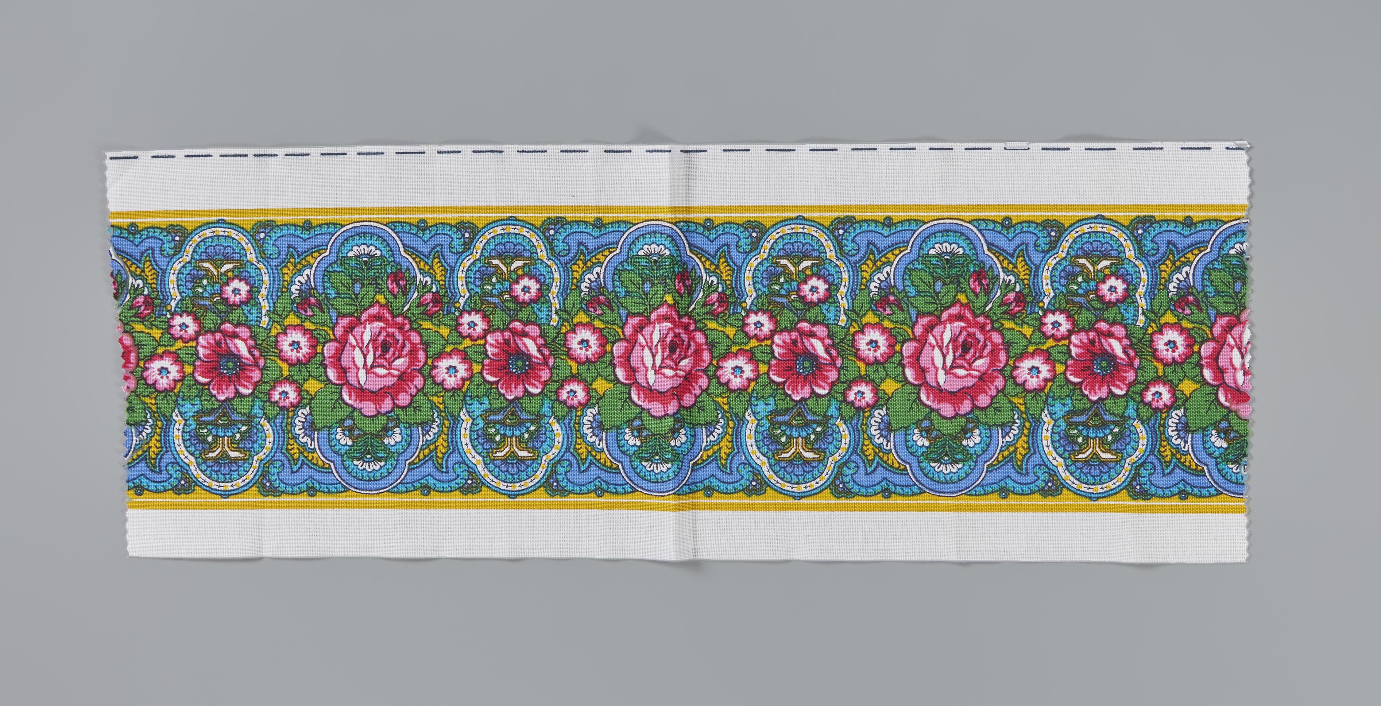 Bedrukte katoen voor schortstukjes, Staphorst, circa...