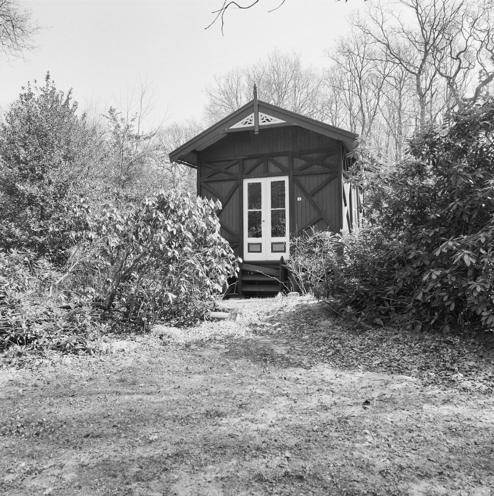 Overzicht voorgevel houten draaibaar TBC-huisje