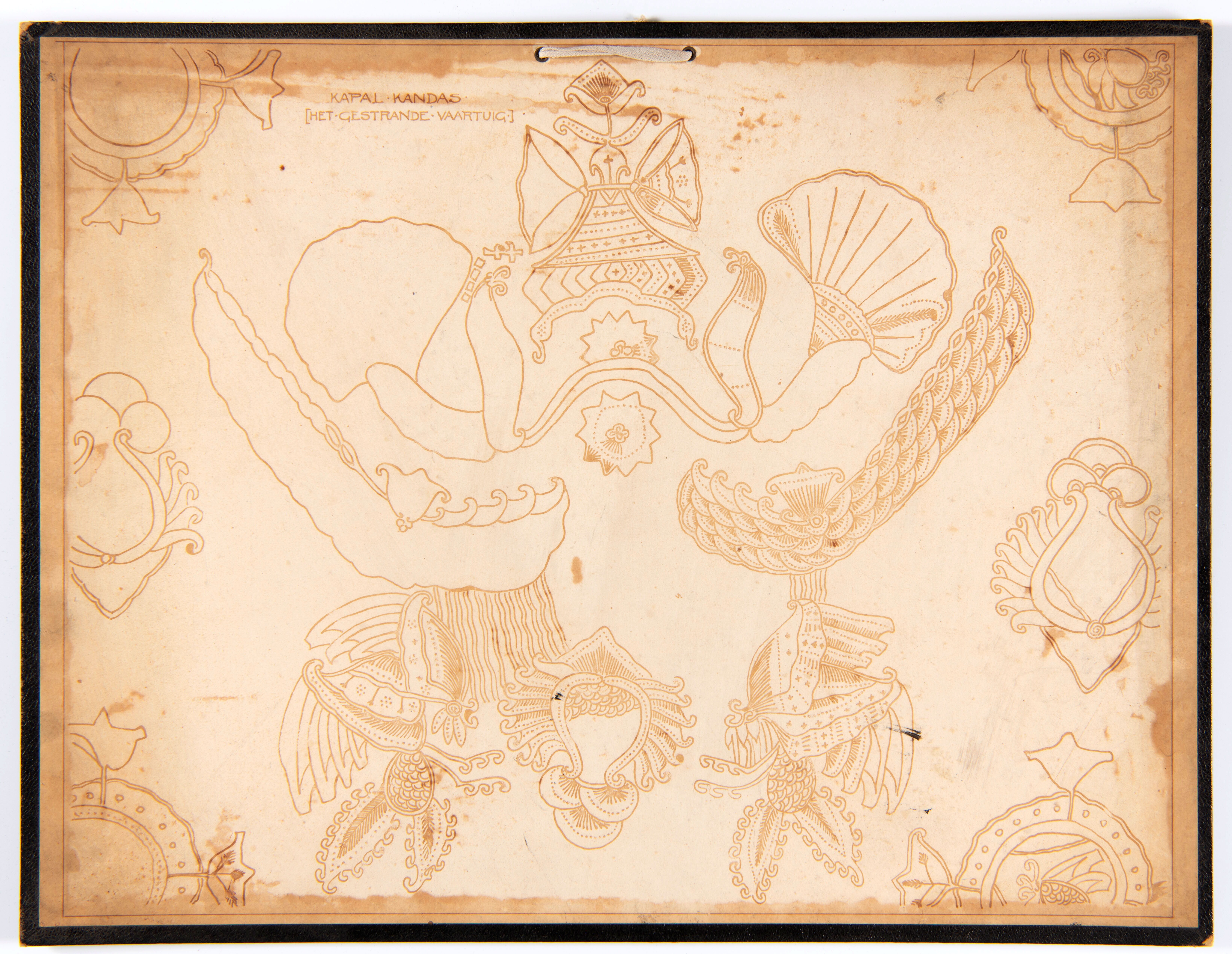Gesnlen en beschilderd beeld van een wajangfiguur