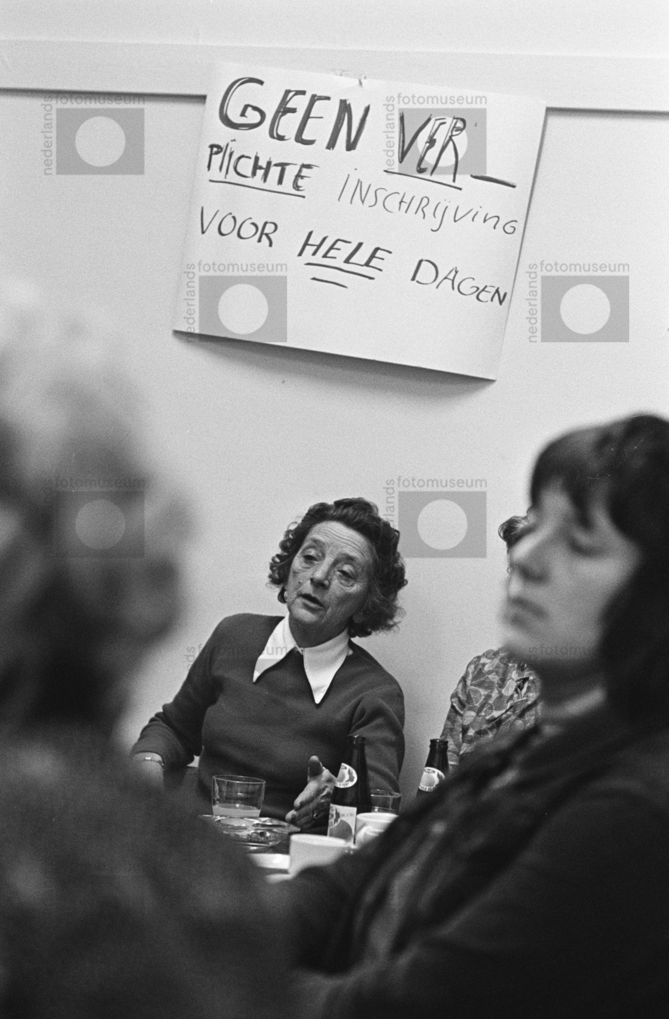 Bijeenkomst vrouwelijke werklozen in gebouw Marco Po...