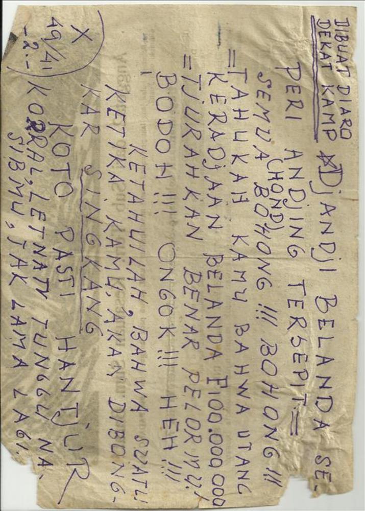 half affiche pro-Indonesië, woorden en tekening in h...