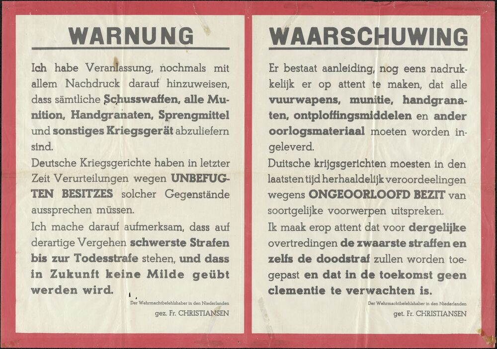 Waarschuwing, door Wehrmachtbefehlshaber Fr. Christi...