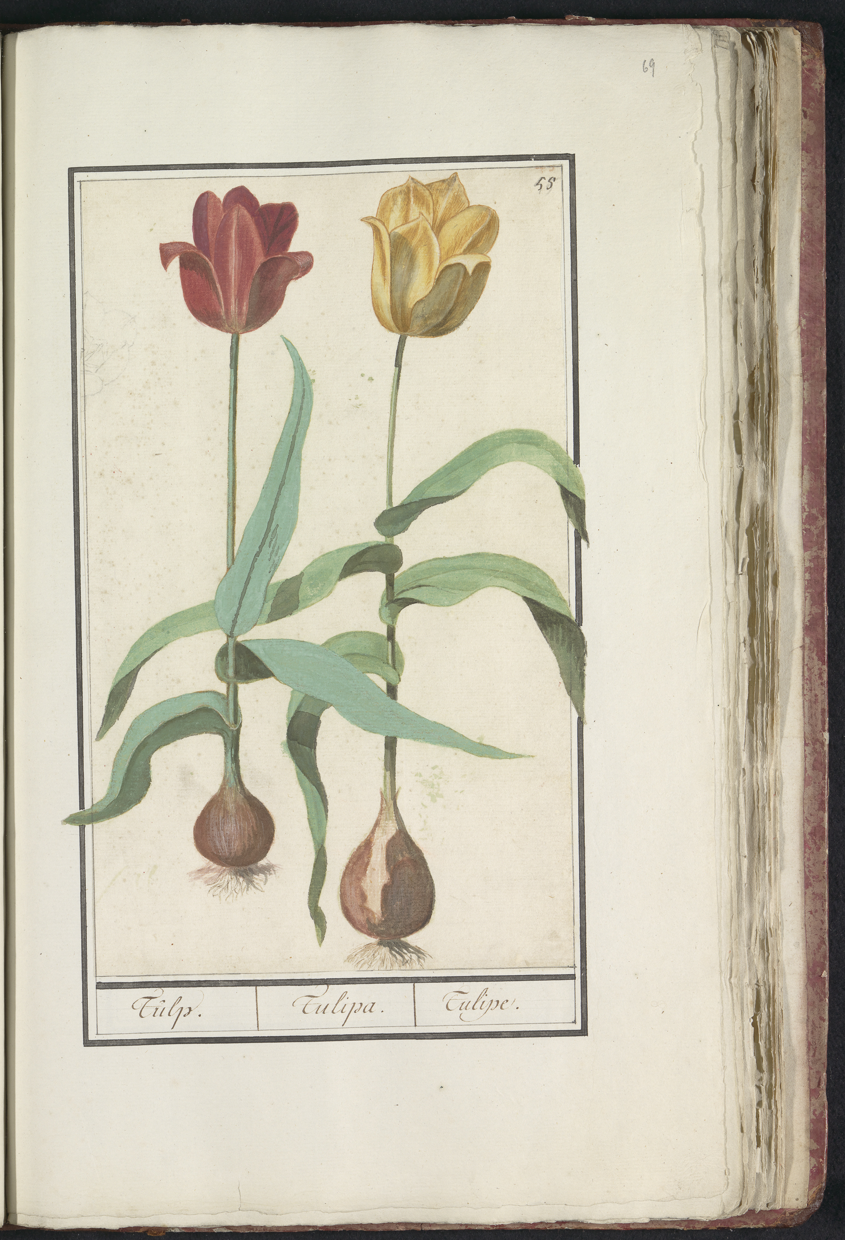 Tulp (Tulipa) en pioenroos (Paeonia)