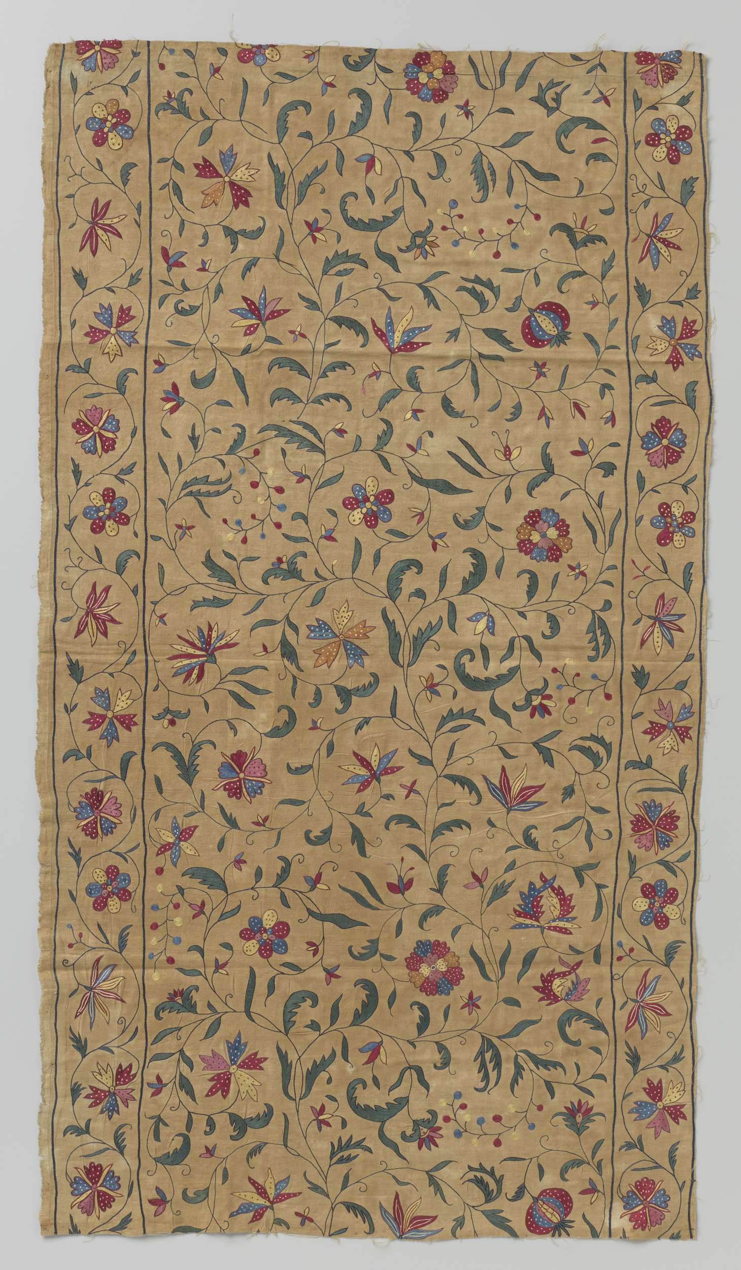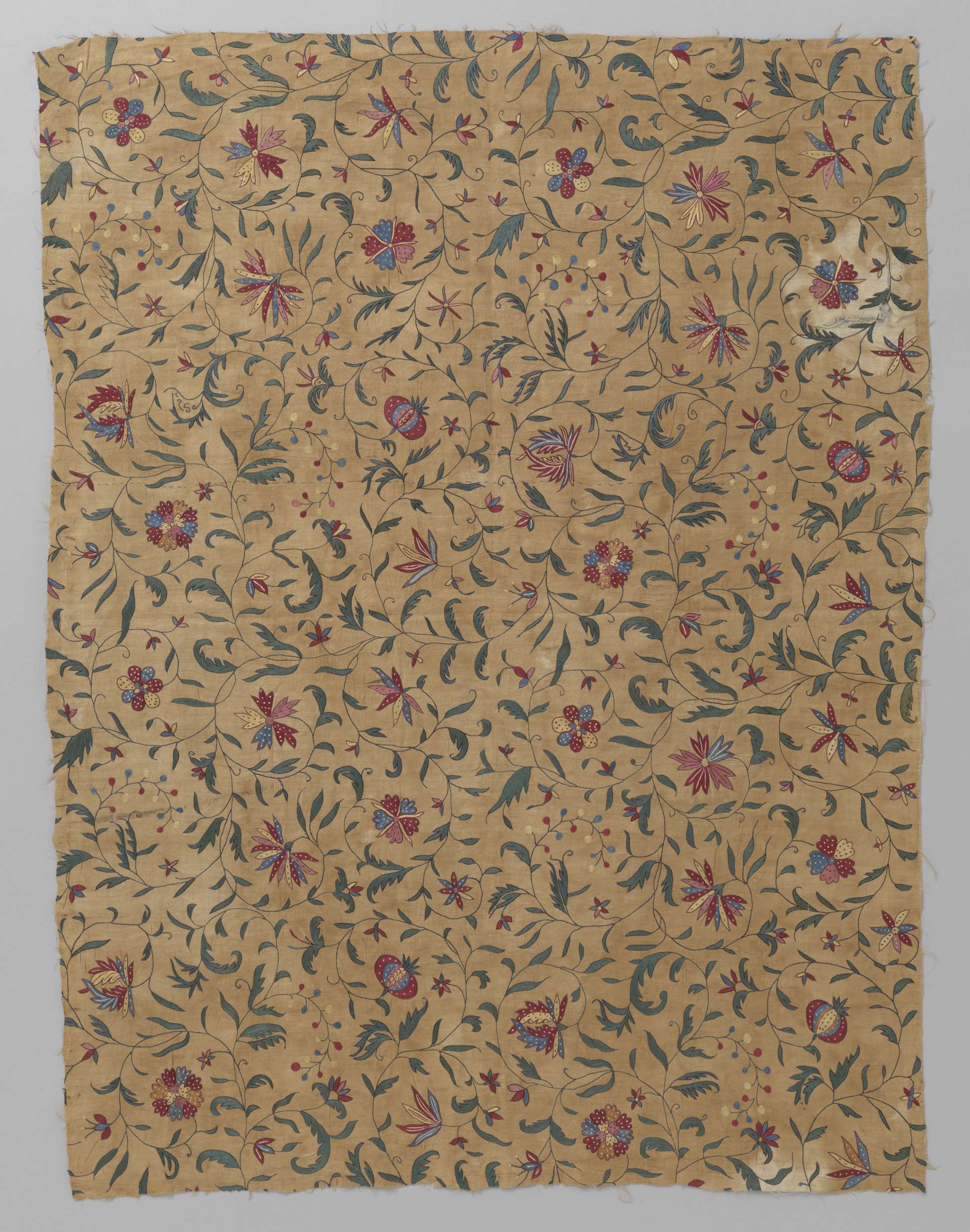 Fragment van een sprei (?) van katoen met veelkleuri...