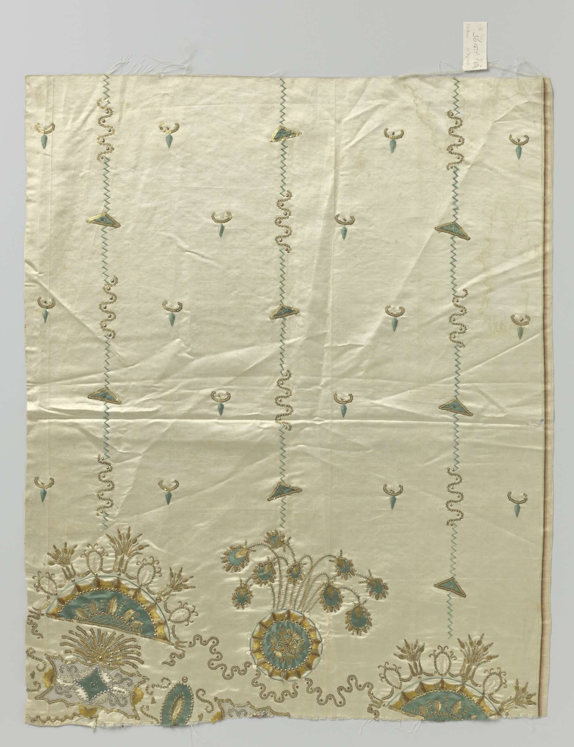 Fragment lichte zijde met opgeborduurde gedeeltelijk...