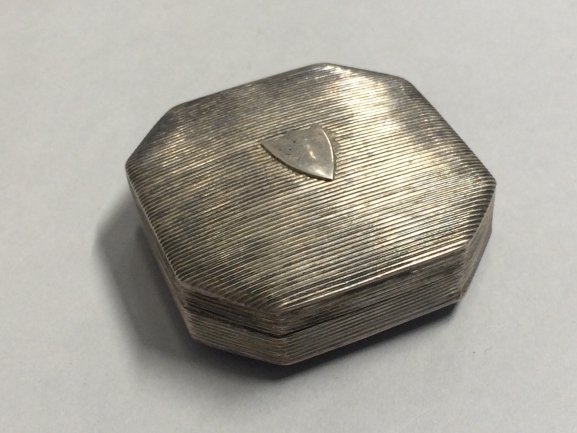 Achthoekig pepermuntdoosje met op het deksel in reli...