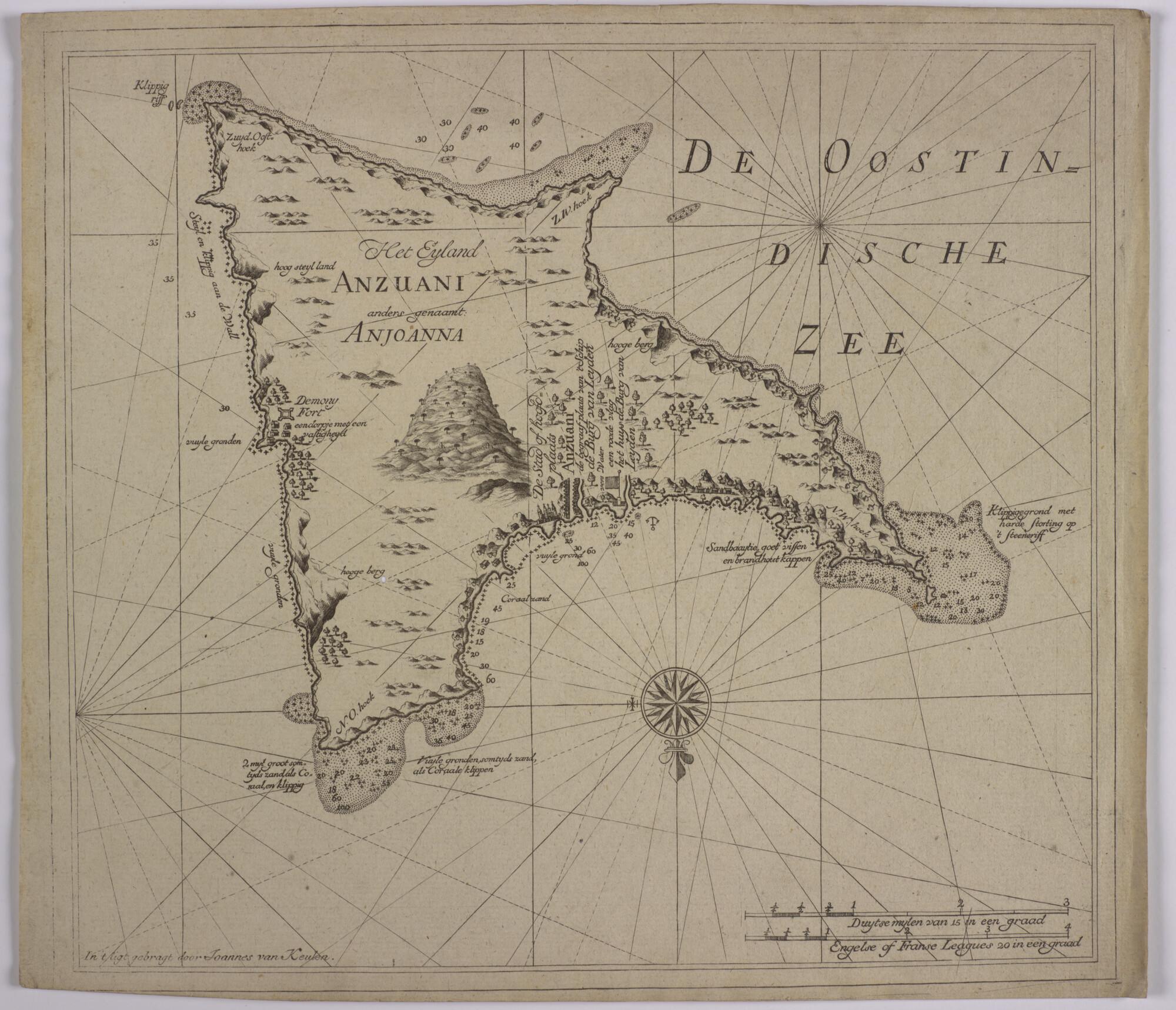 Detailkaart van het eiland Anzuani of Anjoanna (het ...